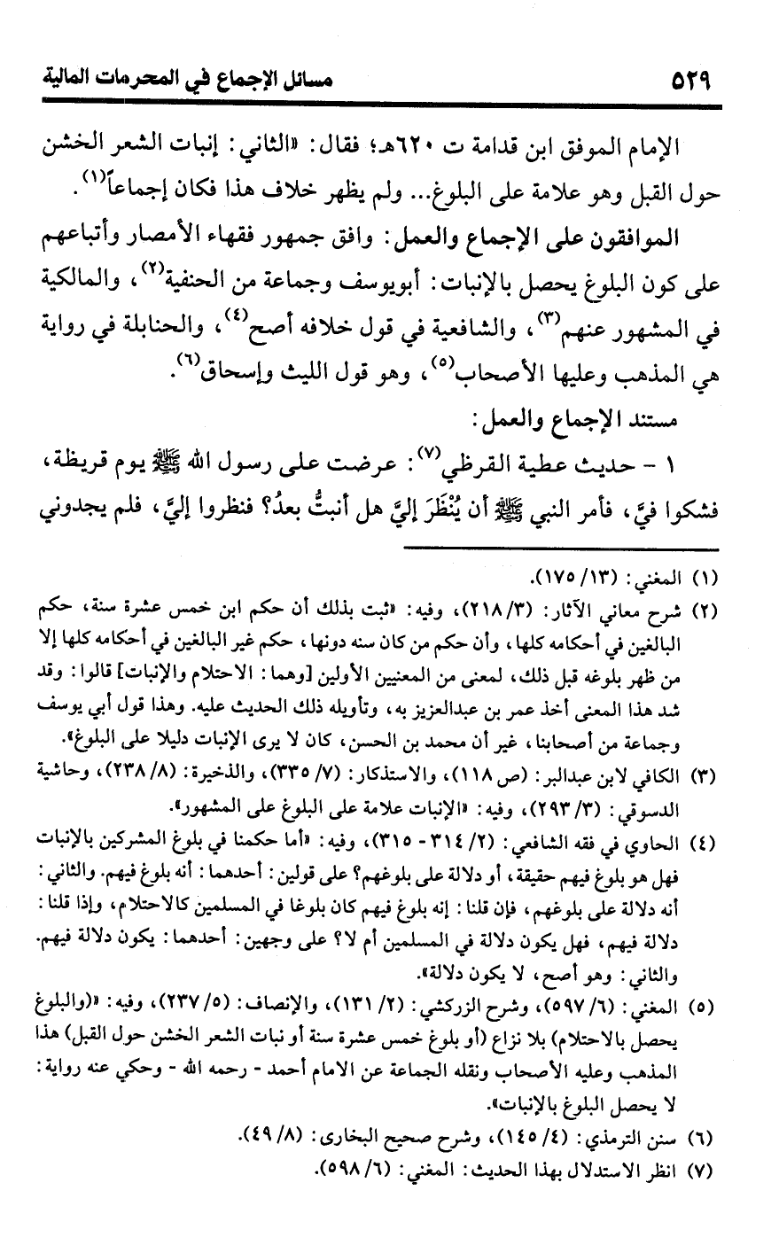 (¬3) الكافي لابن عبد البر: (ص 118)، والاستذكار: (7/ 335)، والذخيرة: (8/ 2138)، وحاشية الدسوقي: (3/ 293)، وفيه: "الإنبات علامة على البلوغ على المشهور".