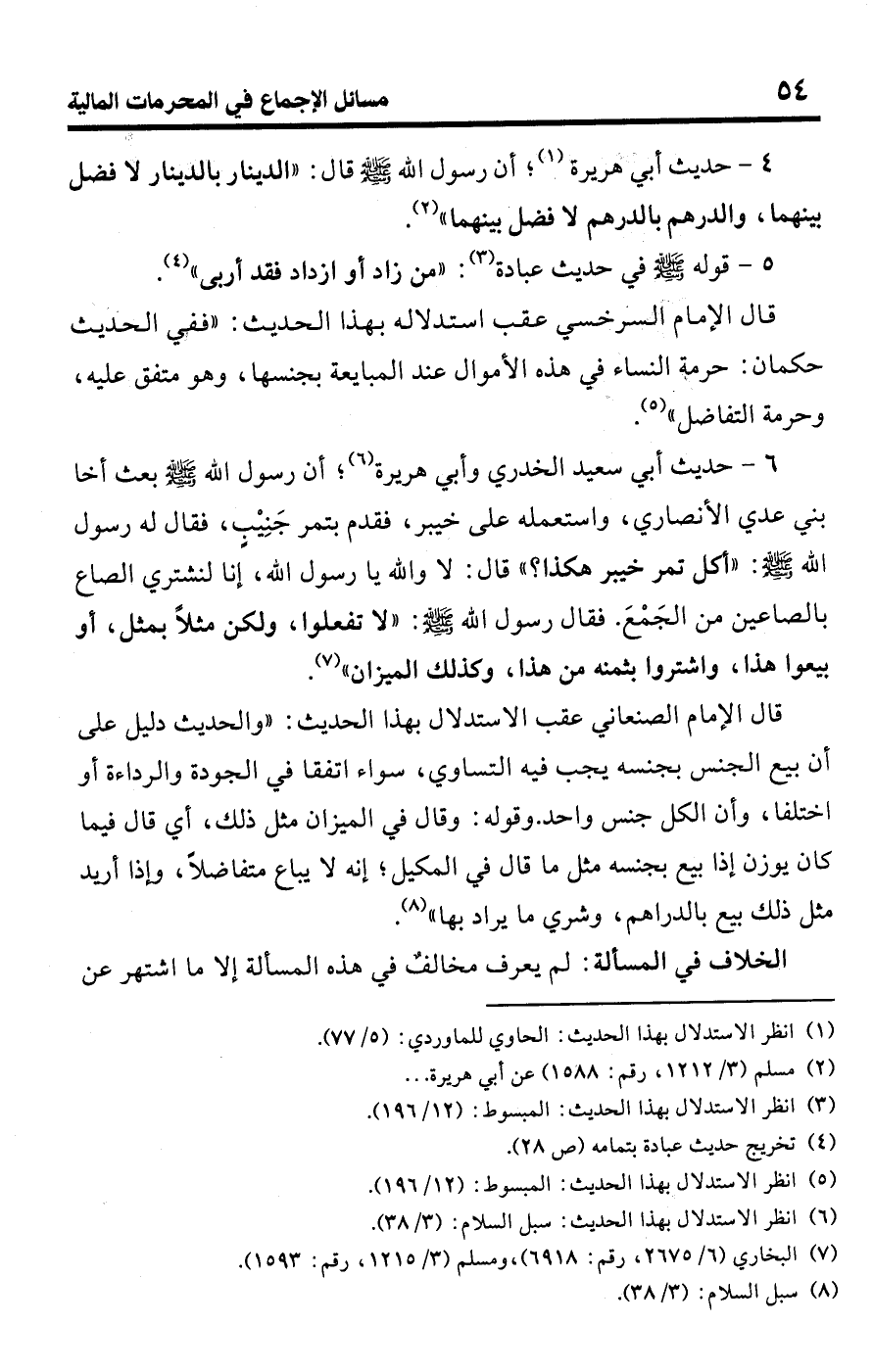 (¬5) انظر الاستدلال بهذا الحديث: المبسوط: (12/ 196).
