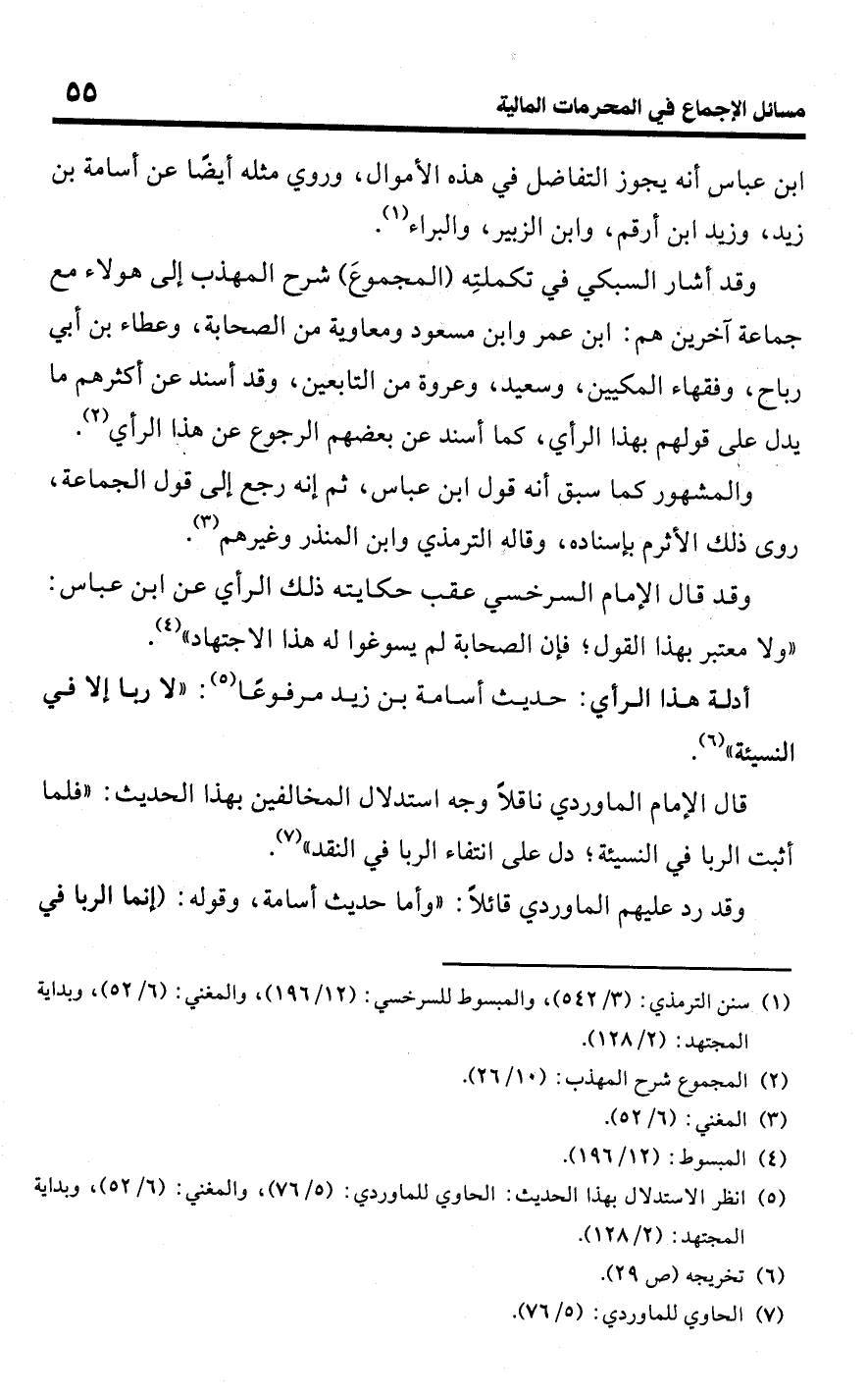 ابن عباس أنه يجوز التفاضل في هذه الأموال، وروي مثله أيضًا عن أسامة بن زيد، وزيد ابن أرقم، وابن الزبير، والبراء (¬1).