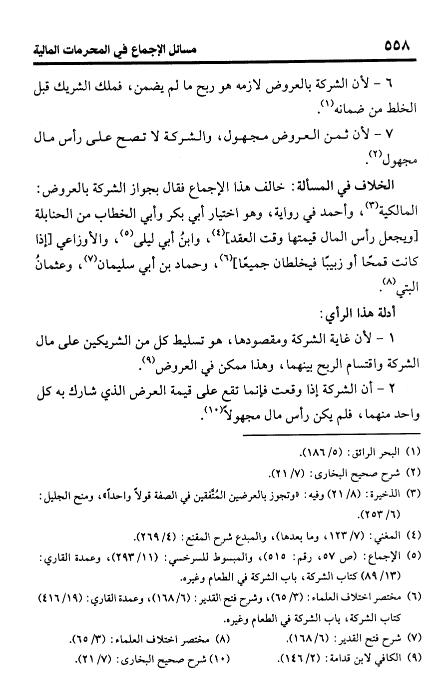 7 - لأن ثمن العروض مجهول، والشركة لا تصح على رأس مال مجهول (¬2).