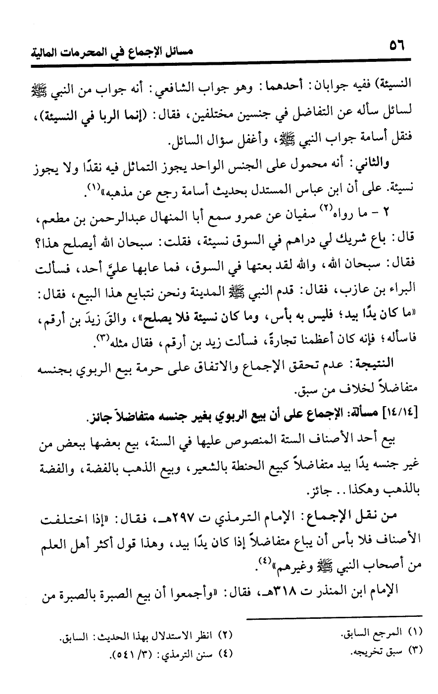 [14/ 14] مسألة: الإجماع على أن بيع الربوي بغير جنسه متفاضلًا جائز.