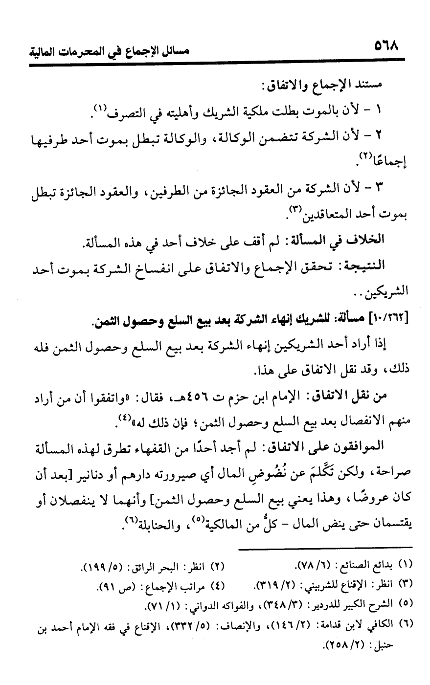 • من نقل الاتفاق: الإمام ابن حزم ت 456 هـ، فقال: "واتفقوا أن من أراد منهم الانفصال بعد بيع السلع وحصول الثمن؛ فإن ذلك له" (¬4).