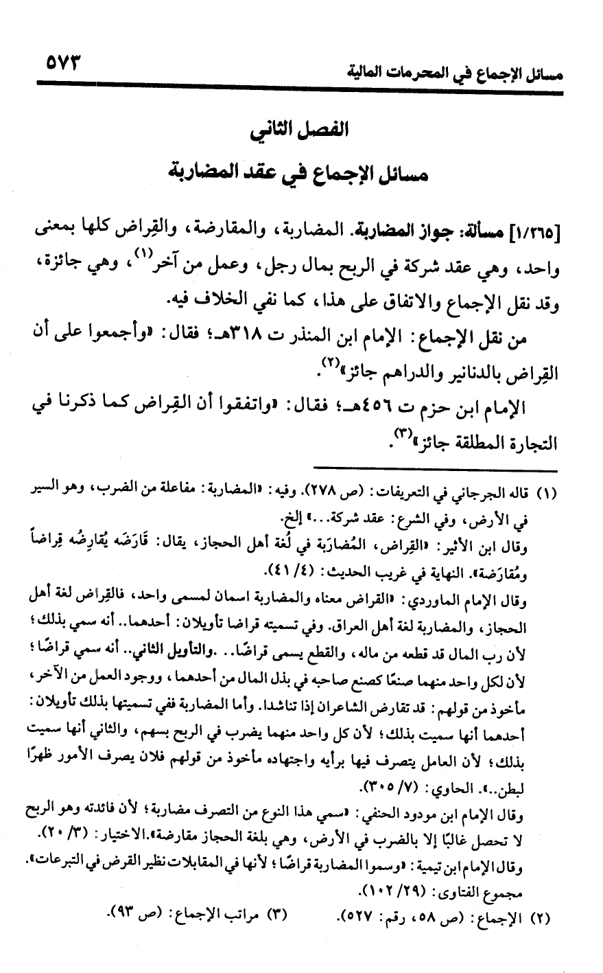 الفصل الثاني مسائل الإجماع في عقد المضاربة