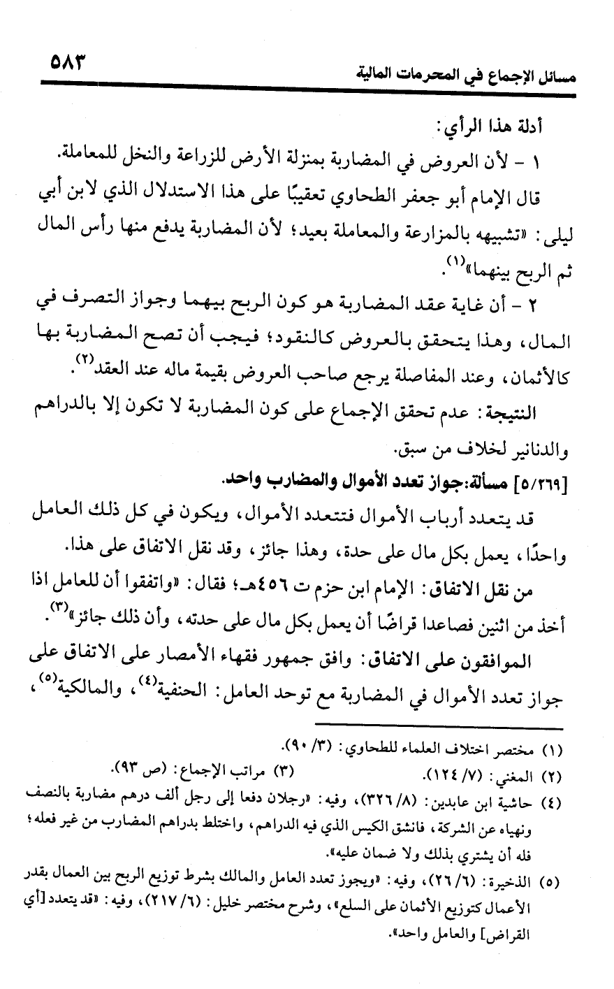 (¬5) الذخيرة: (6/ 26)، وفيه: "ويجوز تعدد العامل والمالك بشرط توزيع الربح بين العمال بقدر الأعمال كتوزيع الأثمان على السلع"، وشرح مختصر خليل: (6/ 217)، وفيه: "قد يتعدد [أي القراض] والعامل واحد".