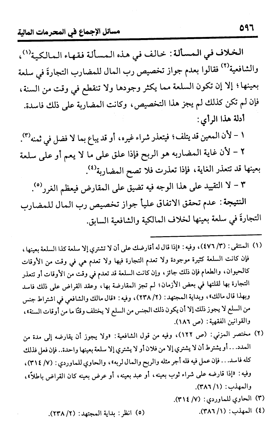 3 - لا التقييد على هذا الوجه فيه تضيق على المقارض فيعظم الغرر (¬5).Rعدم تحقق الاتفاق علي جواز تخصيص رب المال للمضارب التجارةَ في سلعة بعينها لخلاف المالكية والشافعية السابق.