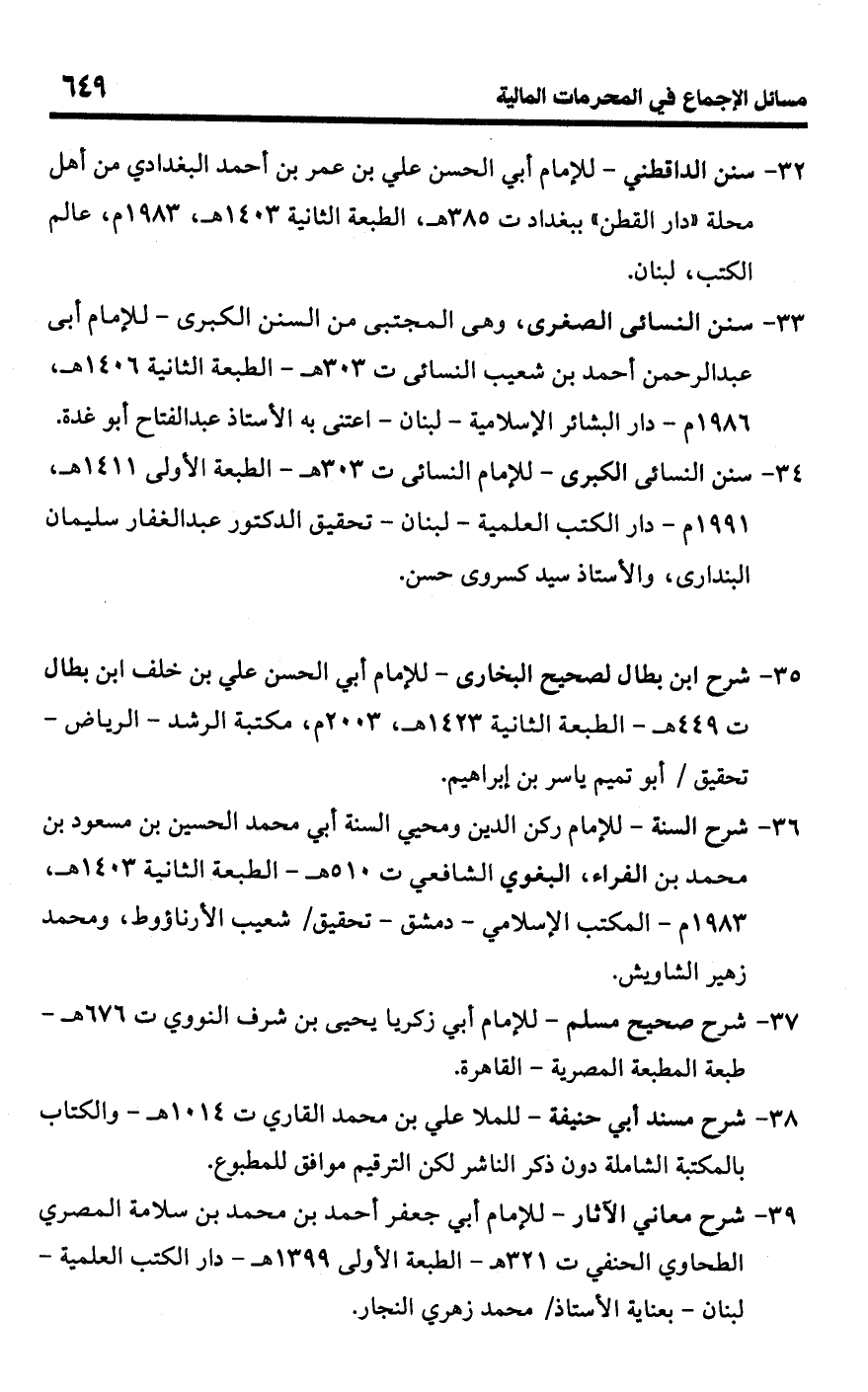 32 - سنن الداقطني - للإمام أبي الحسن علي بن عمر بن أحمد البغدادى من أهل محلة "دار القطن" ببغداد ت 385 هـ، الطبعة الثانية 1403 هـ، 1983 م، عالم الكتب، لبنان.