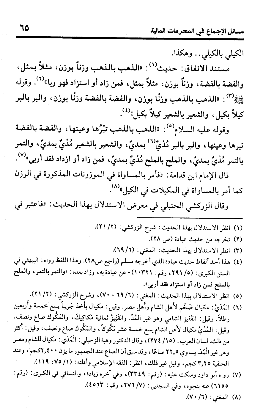 قال الإمام ابن قدامة: "فأمر بالمساواة في الموزونات المذكورة في الوزن كما أمر بالمساواة في المكيلات في الكيل" (¬8).