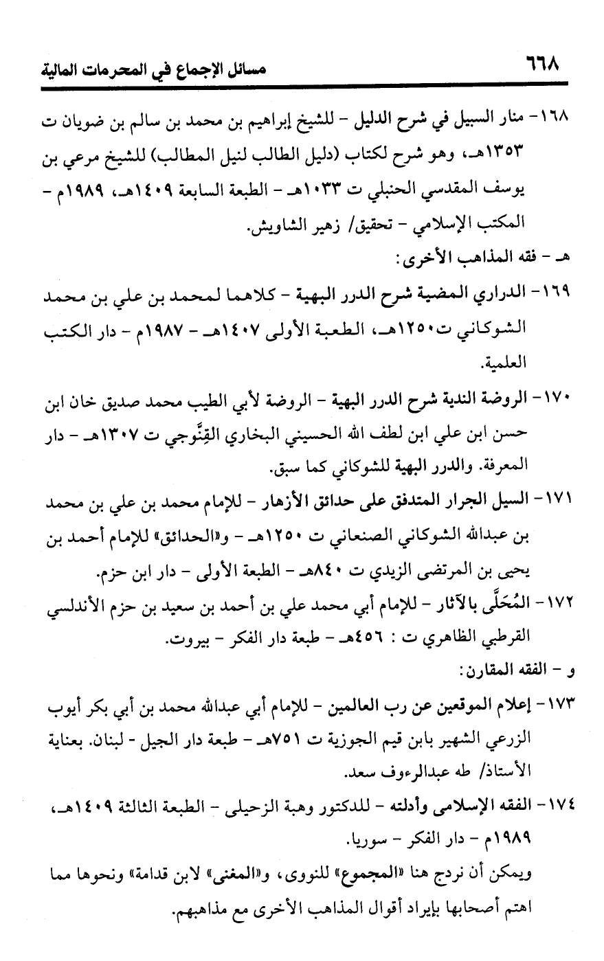 168 - منار السبيل في شرح الدليل - للشيخ إبراهيم بن محمد بن سالم بن ضويان ت 1353 هـ، وهو شرح لكتاب (دليل الطالب لنيل المطالب) للشيخ مرعي بن يوسف المقدسي الحنبلي ت 1033 هـ - الطبعة السابعة 1409 هـ، 1989 م - المكتب الإسلامي - تحقيق/ زهير الشاويش.
