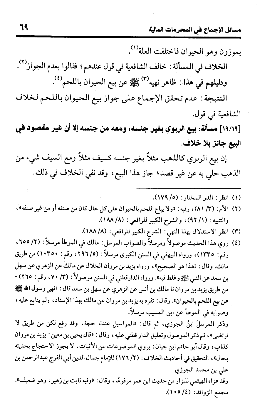• ودليلهم في هذا: ظاهر نهيه (¬3) -صلى اللَّه عليه وسلم- عن بيع الحيوان باللحم (¬4).Rعدم تحقق الإجماع على جواز بيع الحيوان باللحم لخلاف الشافعية في قول.