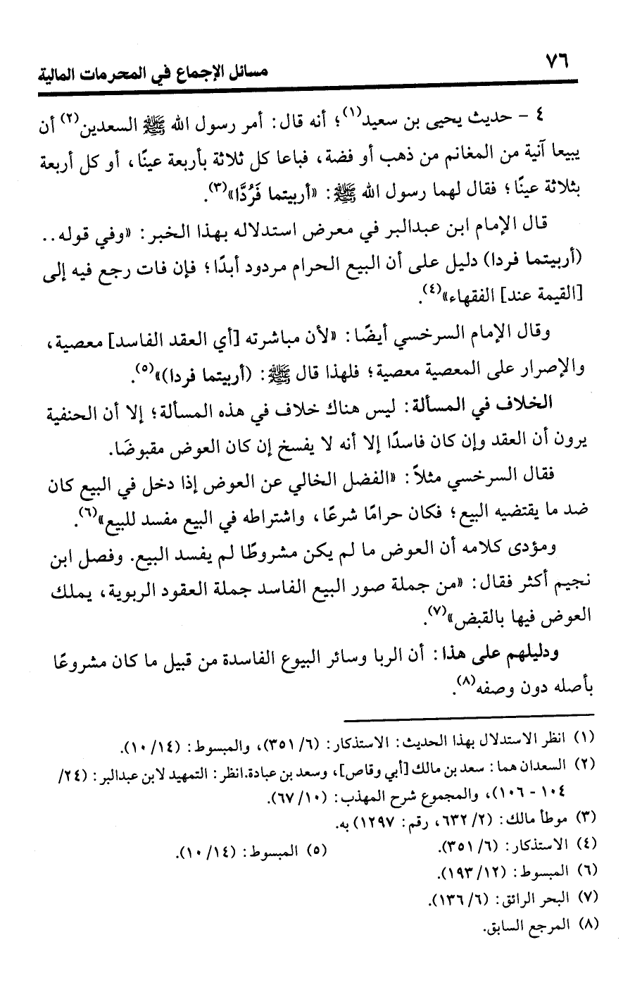 (¬1) انظر الاستدلال بهذا الحديث: الاستذكار (6/ 351)، والمبسوط: (14/ 10).