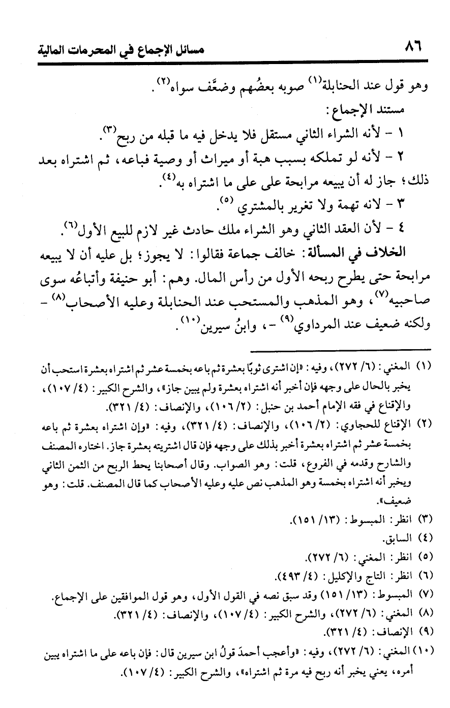 (¬10) المغني: (6/ 272)، وفيه: "وأعجب أحمدَ قولُ ابن سيرين قال: فإن باعه على ما اشتراه يبين أمره، يعني يخبر أنه ربح فيه مرة ثم اشتراه"، والشرح الكبير: (4/ 107).