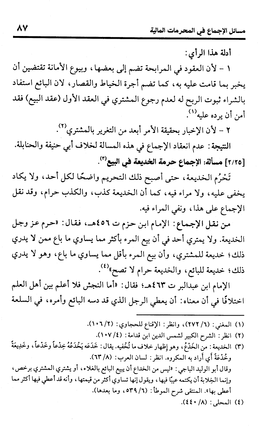 [25/ 2] مسألة: الإجماع حرمة الخديعة في البيع (¬3).