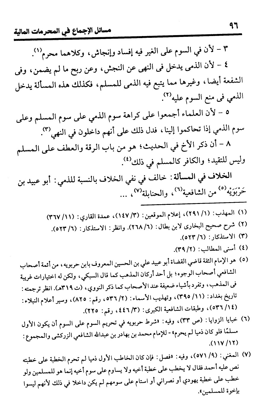 • الخلاف في المسألة: خالف في نفي الخلاف بالنسبة للذمي: أبو عبيد بن حَرْبَوَيْه (¬5) من الشافعية (¬6)، والحنابلة (¬7)،