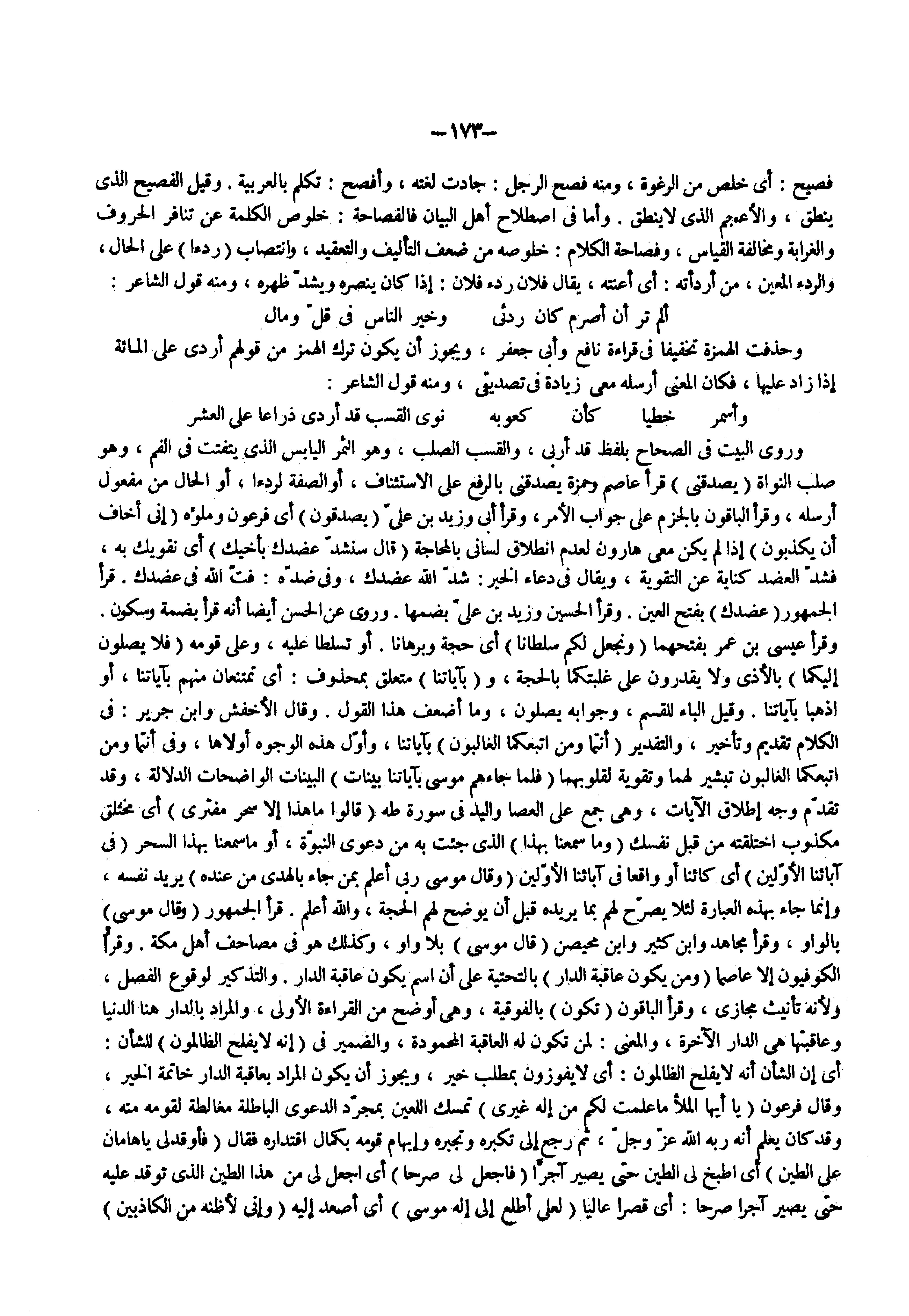 فصيح أي خلص من الرغوة ومنه فصح الرجل جادت لغته وأفصح تكلم بالعربية وقيل الفصيح الذي ينطق والأعجم الذي لا ينطق وأما في اصطلاح أهل البيان فالفصاحة خلوص الكلمة عن تنافر الحروف والغرابة ومخالفة القياس وفصاحة الكلام خلوصه من ضعف التأليف والتعقيد وانتصاب ردءا على الحال والردء المعين من أردأته أي أعنته يقال فلان ردء فلان إذا كان ينصره ويشد ظهره ومنه قول الشاعر ألم تر أن أصرم كان ردئي