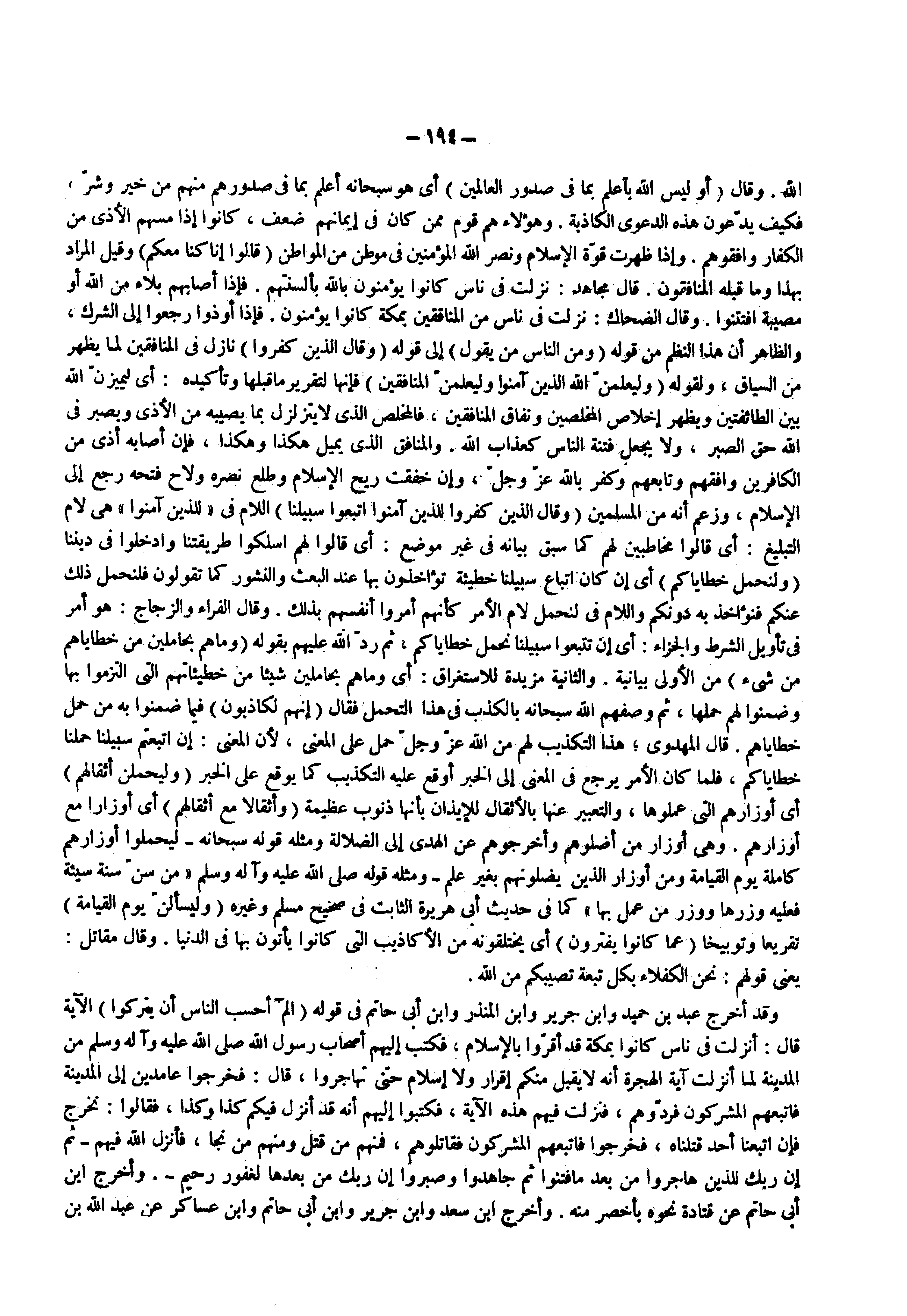 وقد أخرج عبد بن حميد وابن جرير وابن المنذر وابن أبي حاتم في قوله ) الم أحسب الناس أن يتركوا ( الاية قال أنزلت في ناس كانوا بمكة قد أقروا بالإسلام فكتب إليهم أصحاب رسول الله صلى الله عليه واله وسلم من المدينة لما أنزلت آية الهجرة أنه لا يقبل منكم إقرار ولا إسلام حتى تهاجروا قال فخرجوا عامدين إلى المدينة فاتبعهم المشركون فردوهم فنزلت فيهم هذه الآية فكتبوا إليهم أنه قد أنزل فيكم كذا وكذا فقالوا نخرج فإن اتبعنا أحد قتلناه فخرجوا فاتبعهم المشركون فقاتلوهم فمنهم من قتل ومنهم من نجا فأنزل الله فيهم ) ثم إن ربك للذين هاجروا من بعد ما فتنوا ثم جاهدوا وصبروا إن ربك من بعدها لغفور رحيم ( وأخرج ابن أبي حاتم عن قتادة نحوه بأخصر منه وأخرج ابن سعد وابن جرير وابن أبي حاتم وابن عساكر عن عبد الله بن