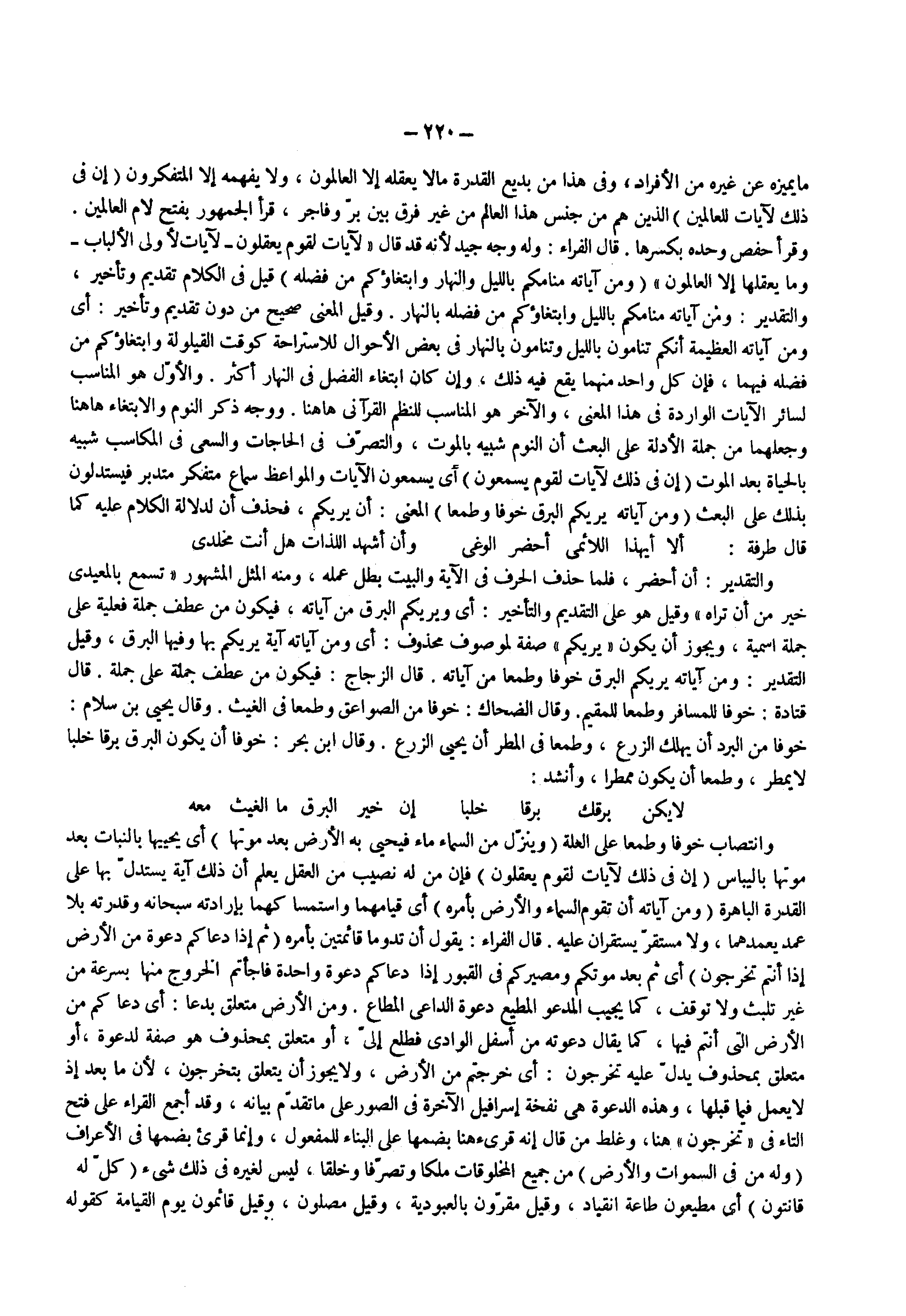 ) ومن آياته يريكم البرق خوفا وطمعا ( المعنى أن يريكم فحذف أن لدلالة الكلام عليه كما قال طرفه ألا أيهذا اللائمي أحضر الوغى