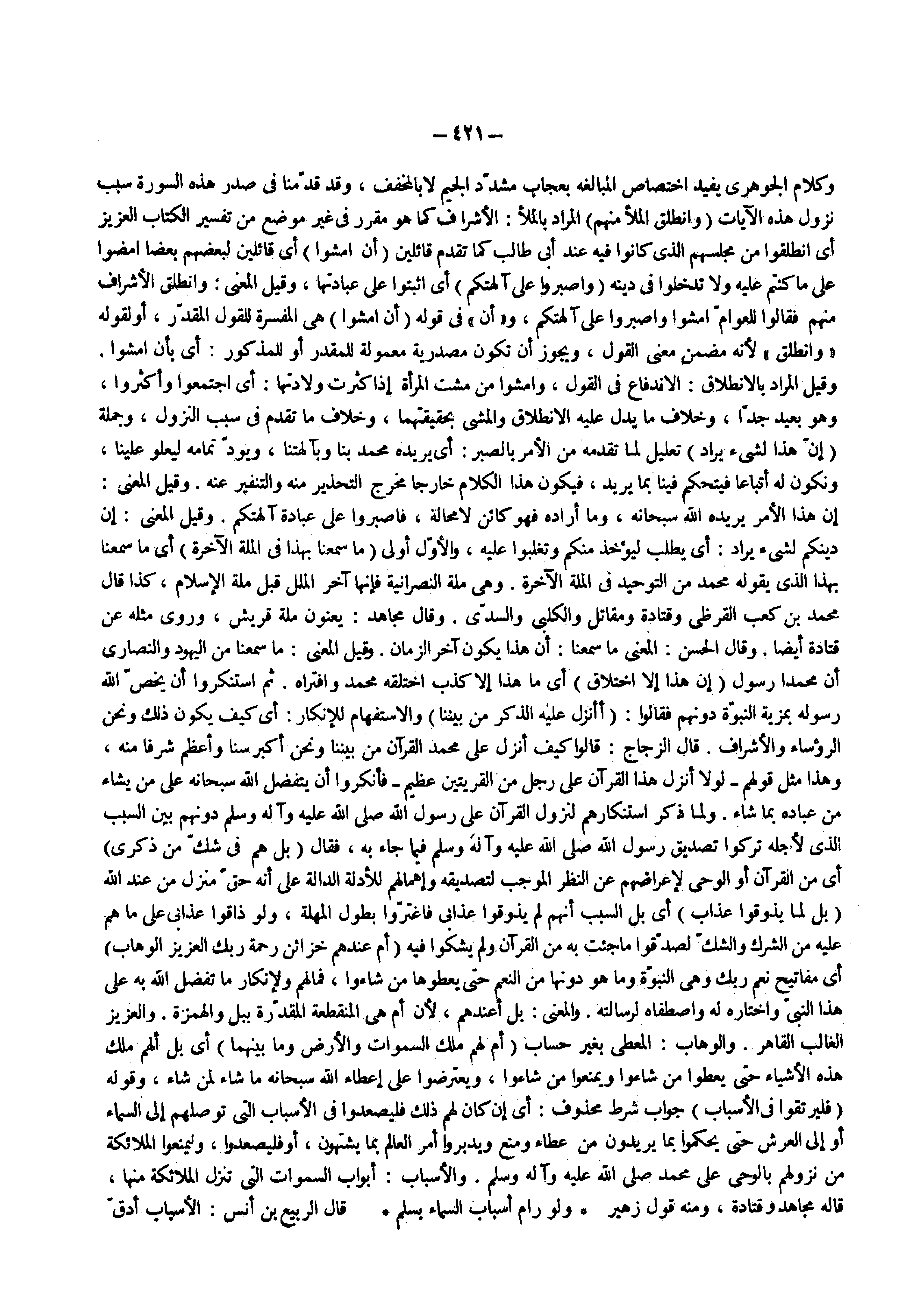 وكلام الجوهرى يفيد اختصاص المبالغة بعجاب مشدد الجيم لا بالمخفف وقد قدمنا فى صدر هذه السورة سبب نزول هذه الآيات