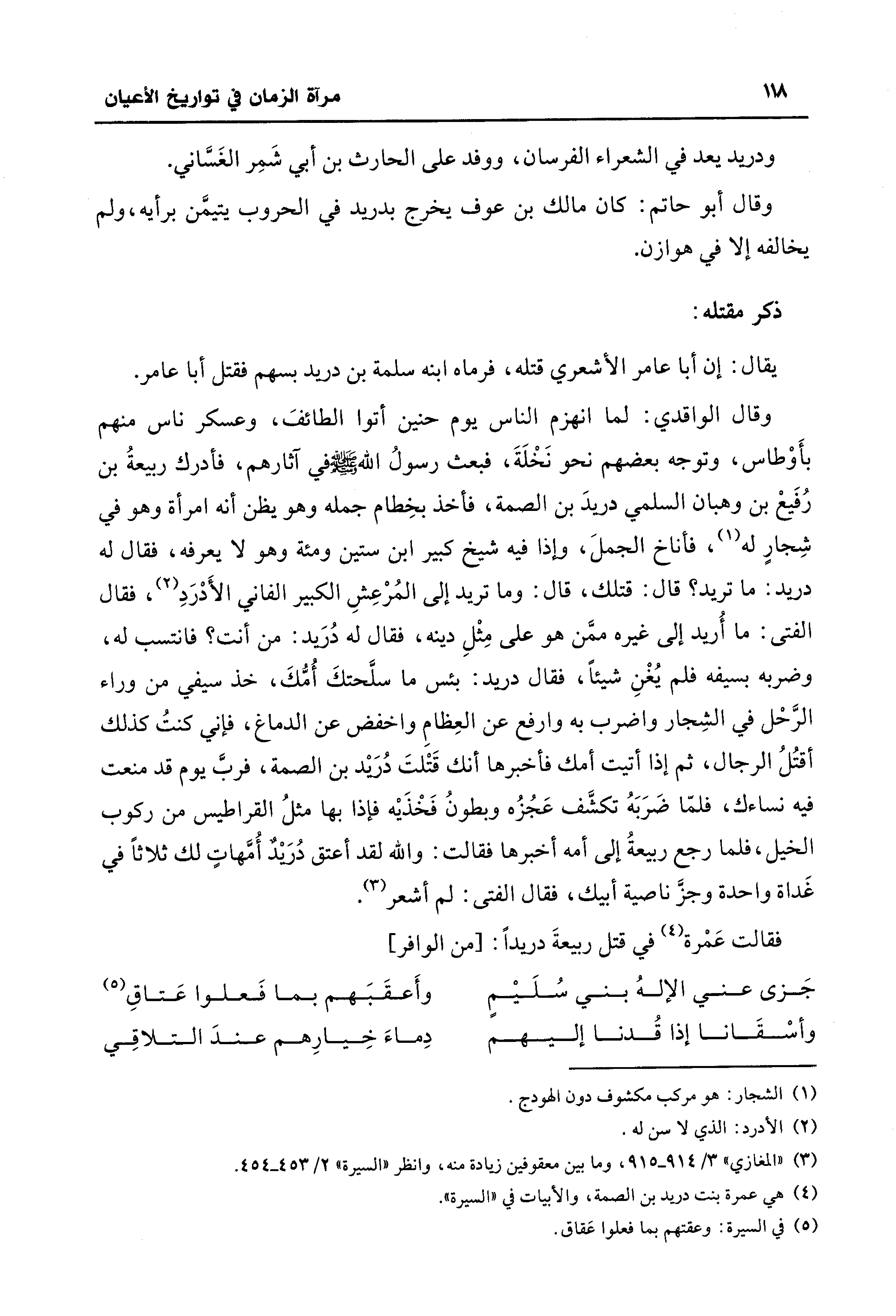 (¬4) هي عمرة بنت دريد بن الصمة، والأبيات في "السيرة".