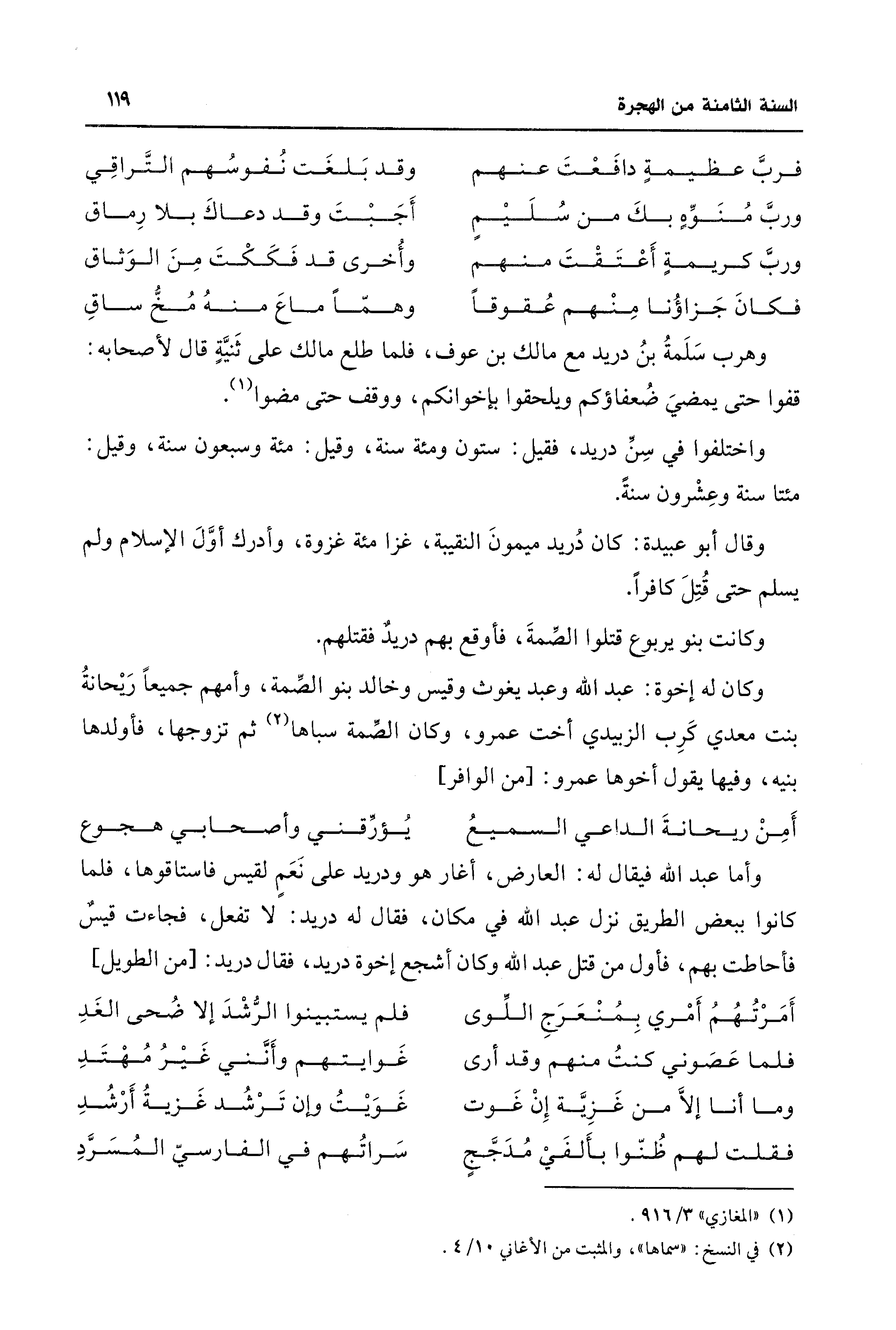 وأما عبد الله فيقال له: العارض، أغار هو ودريد على نَعَمٍ لقيس فاستاقوها، فلما كانوا ببعض الطريق نزل عبد الله في مكان، فقال له دريد: لا تفعل، فجاءت قيسٌ فأحاطت بهم، فأول من قتل عبد الله وكان أشجع إخوة دريد، فقال دريد: [من الطويل]