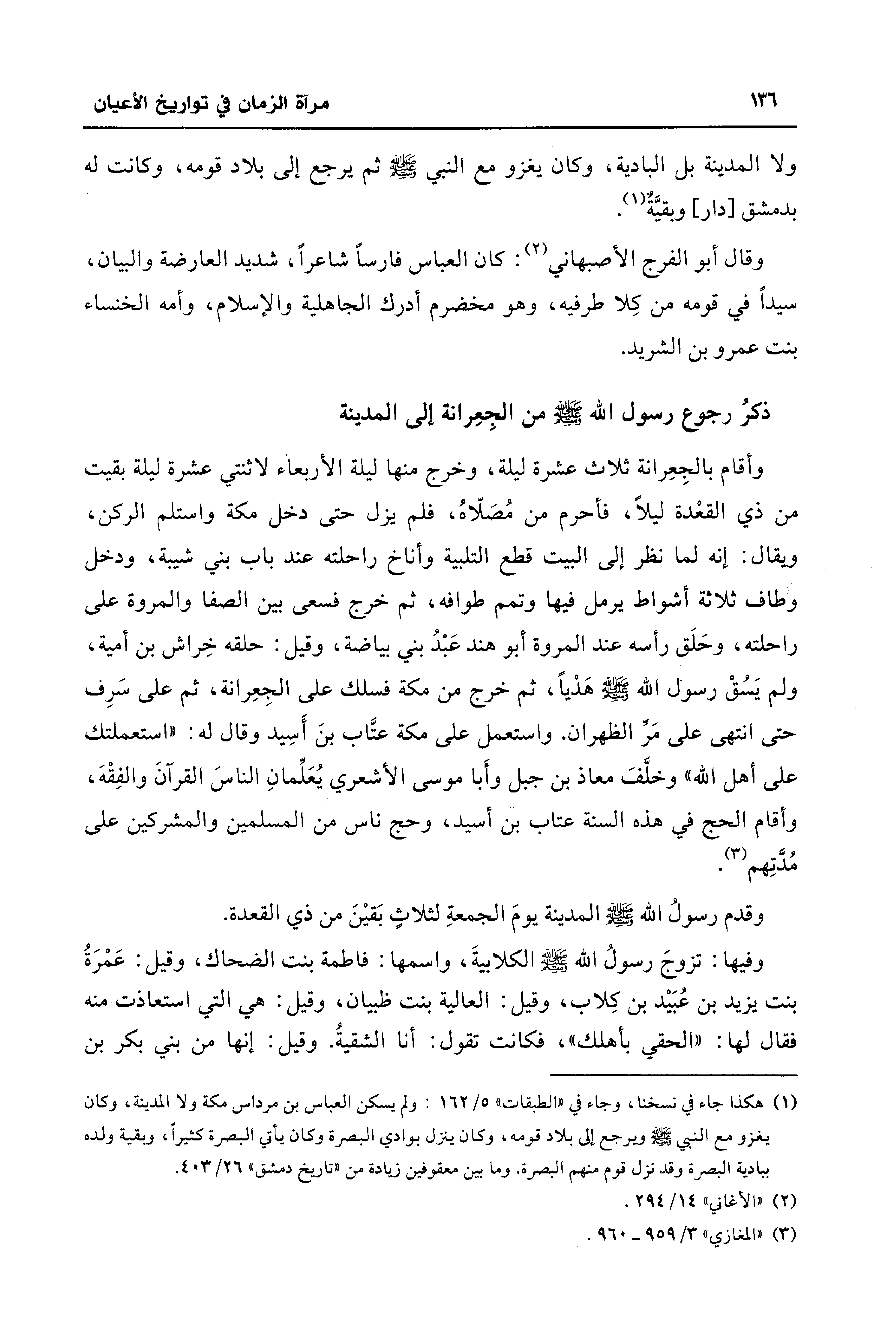 ذكرُ رجوع رسول الله - صلى الله عليه وسلم - من الجِعِرانة إلى المدينة