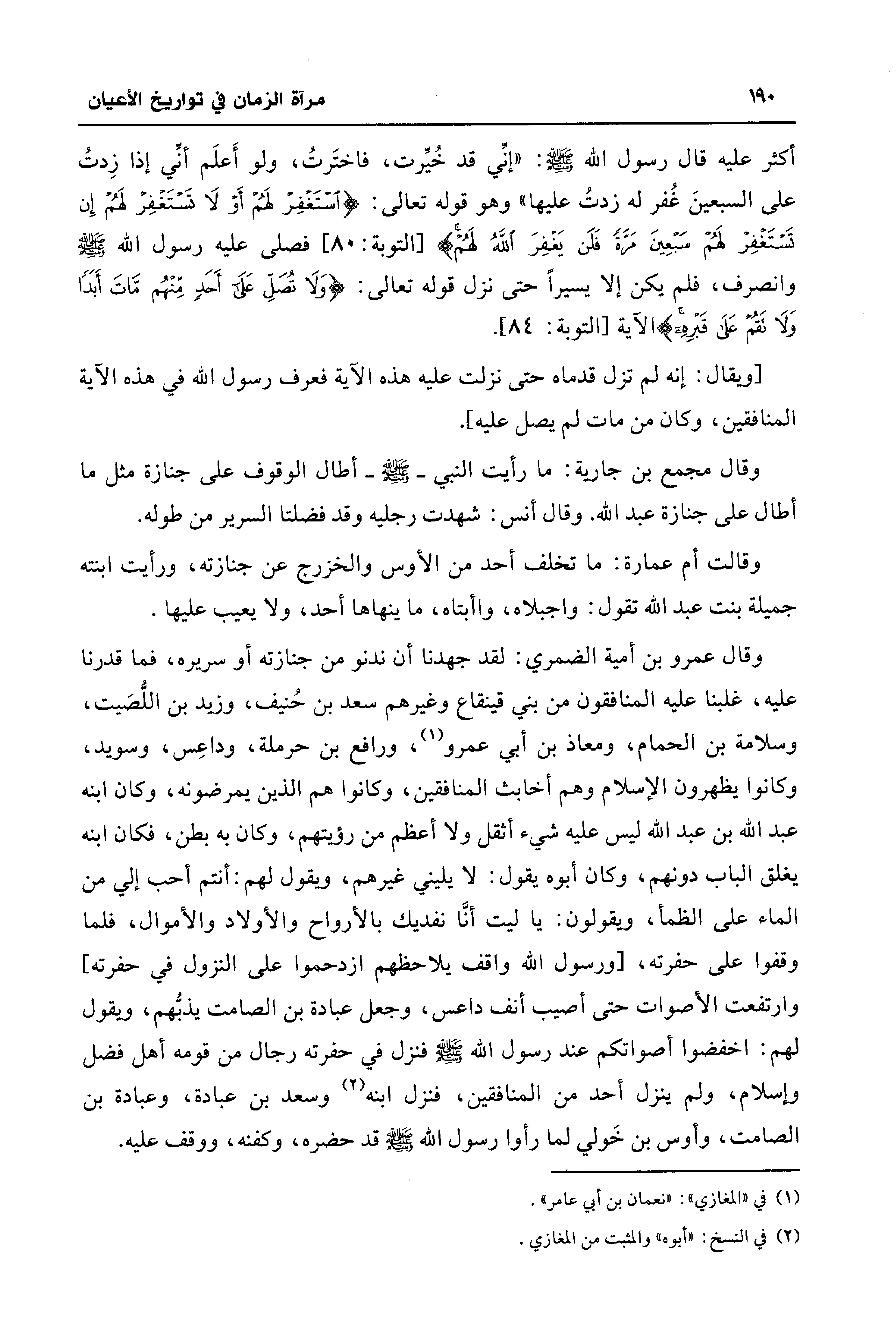 أكثر عليه قال رسول الله - صلى الله عليه وسلم -: "إنَّي قد خُيِّرت، فاختَرتُ، ولو أَعلَم أنِّي إذا زِدتُ على السبعينَ غُفر له زدتُ عليها" وهو قوله تعالى: {اسْتَغْفِرْ لَهُمْ أَوْ لَا تَسْتَغْفِرْ لَهُمْ إِنْ تَسْتَغْفِرْ لَهُمْ سَبْعِينَ مَرَّةً فَلَنْ يَغْفِرَ اللَّهُ} [التوبة: 80] فصلى عليه رسول الله - صلى الله عليه وسلم - وانصرف، فلم يكن إلا يسيرًا حتَّى نزل قوله تعالى: {وَلَا تُصَلِّ عَلَى أَحَدٍ مِنْهُمْ مَاتَ أَبَدًا وَلَا تَقُمْ عَلَى قَبْرِهِ} الآية [التوبة: 84].