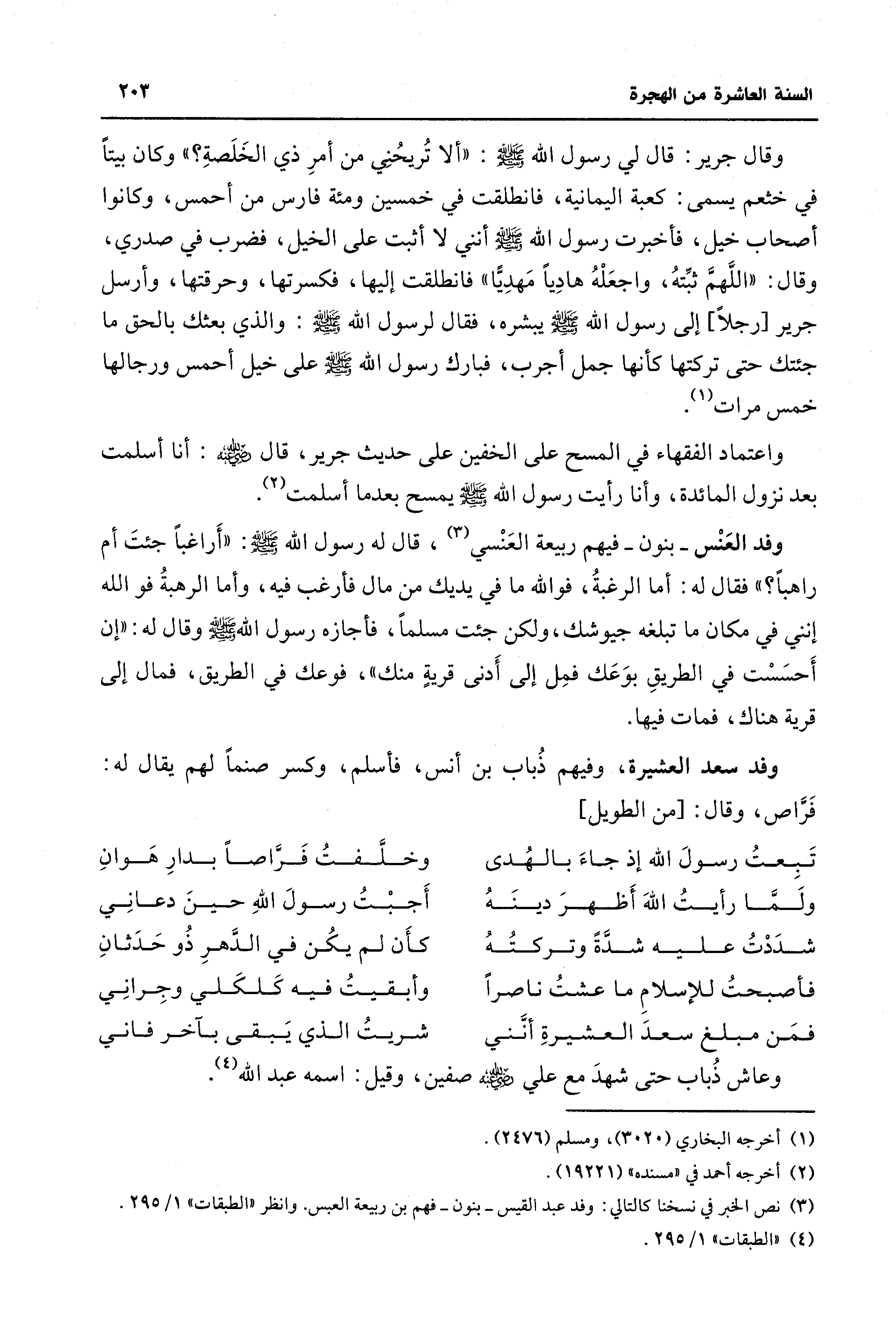 وفد سعد العشيرة، وفيهم ذُباب بن أنس، فأسلم، وكسر صنمًا لهم يقال له: فَرَّاص، وقال: [من الطويل]