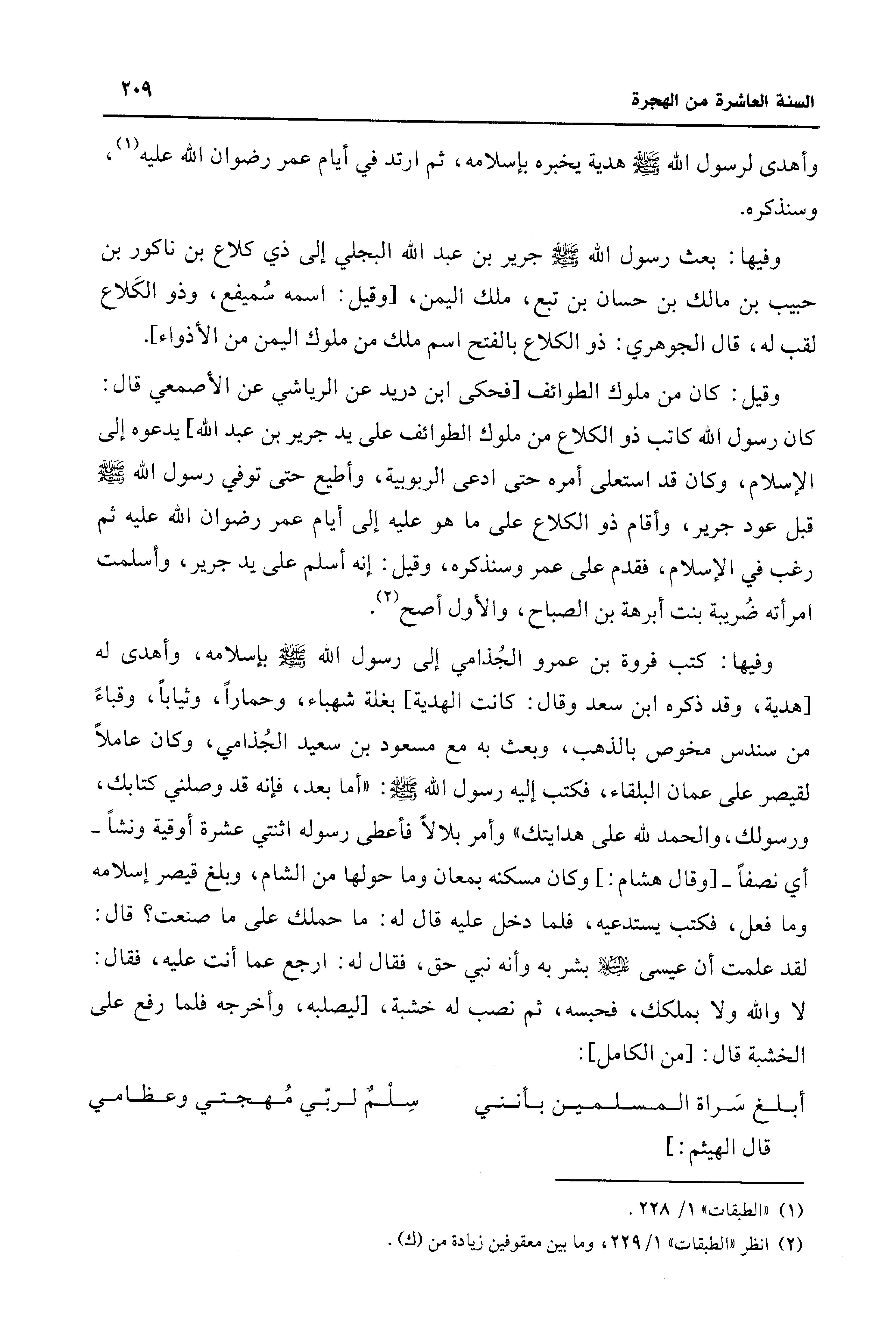 وفيها: بعث رسول الله - صلى الله عليه وسلم - جرير بن عبد الله البجلي إلى ذي كلاع بن ناكور بن حبيب بن مالك بن حسان بن تبع، ملك اليمن، [وقيل: اسمه سُميفع، وذو الكَلاع لقب له، قال الجوهري: ذو الكلاع بالفتح اسم ملك من ملوك اليمن من الأذواء].