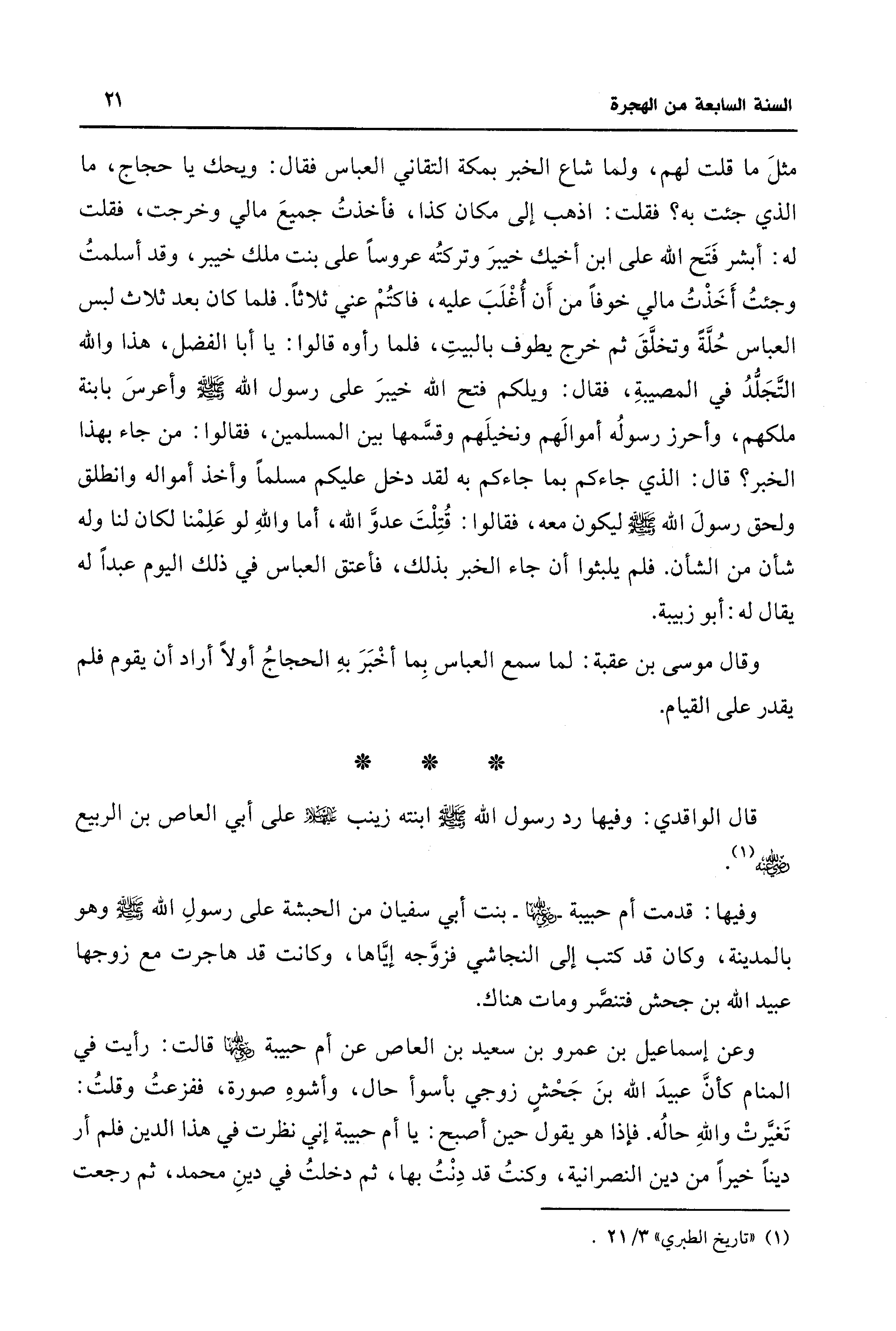 وفيها: قدمت أم حبيبة - رضي الله عنها - بنت أبي سفيان من الحبشة على رسولِ الله - صلى الله عليه وسلم - وهو بالمدينة، وكان قد كتب إلى النجاشي فزوَّجه إيَّاها، وكانت قد هاجرت مع زوجها عبيد الله بن جحش فتنصَّر ومات هناك.