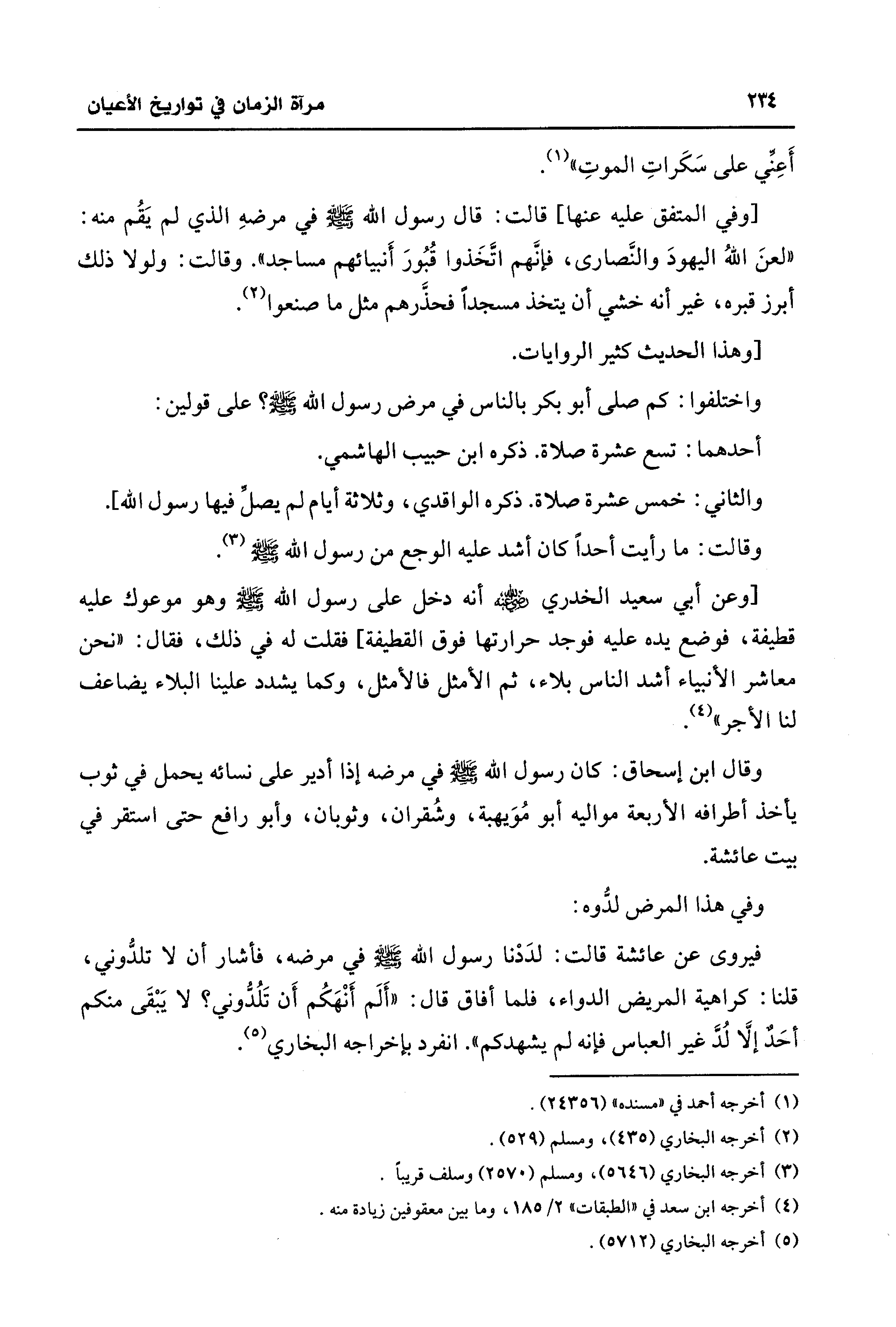 [وفي المتفق عليه عنها] قالت: قال رسول الله - صلى الله عليه وسلم - في مرضهِ الذي لم يَقُم منه: "لعنَ اللهُ اليهودَ والنَّصارى، فإنَّهم اتَّخَذوا قُبُورَ أَنبيائهم مساجد". وقالت: ولولا ذلك أبرز قبره، غير أنه خشي أن يتخذ مسجدًا فحذَّرهم مثل ما صنعوا (¬2).