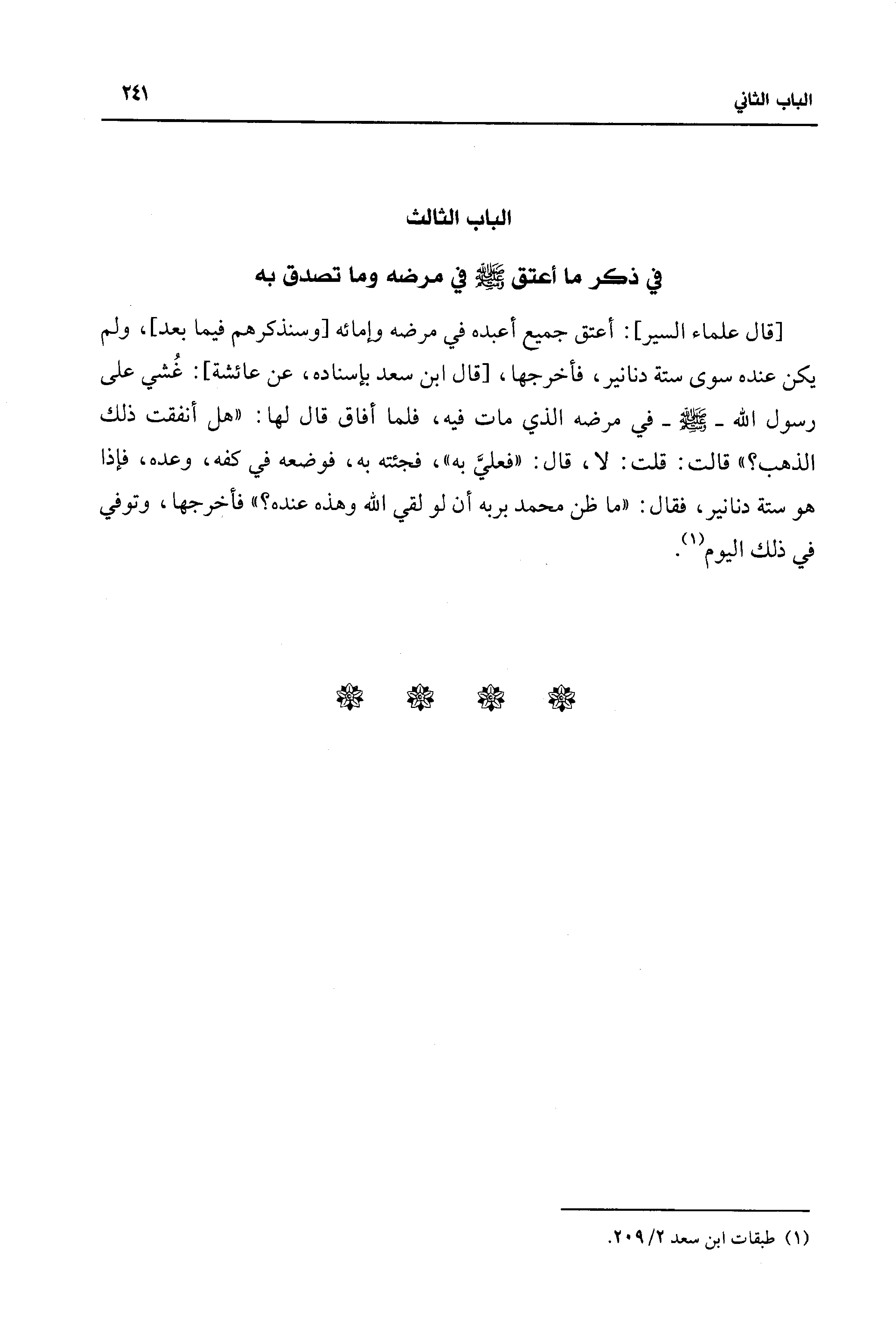 الباب الثالث: في ذكر ما أعتق - صلى الله عليه وسلم - في مرضه وما تصدق به