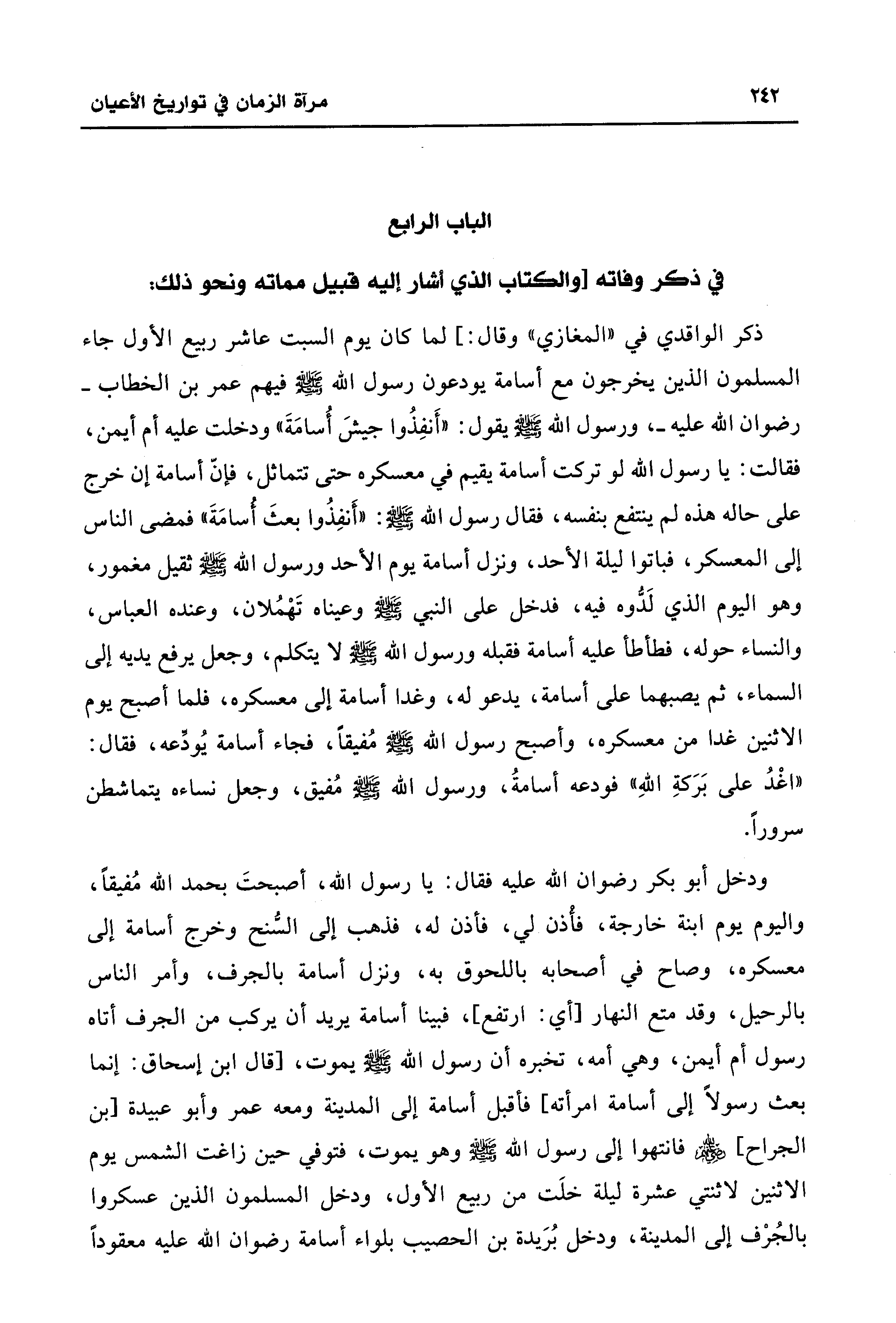 الباب الرابع: في ذكر وفاته [والكتاب الذي أشار إليه قبيل مماته ونحو ذلك: