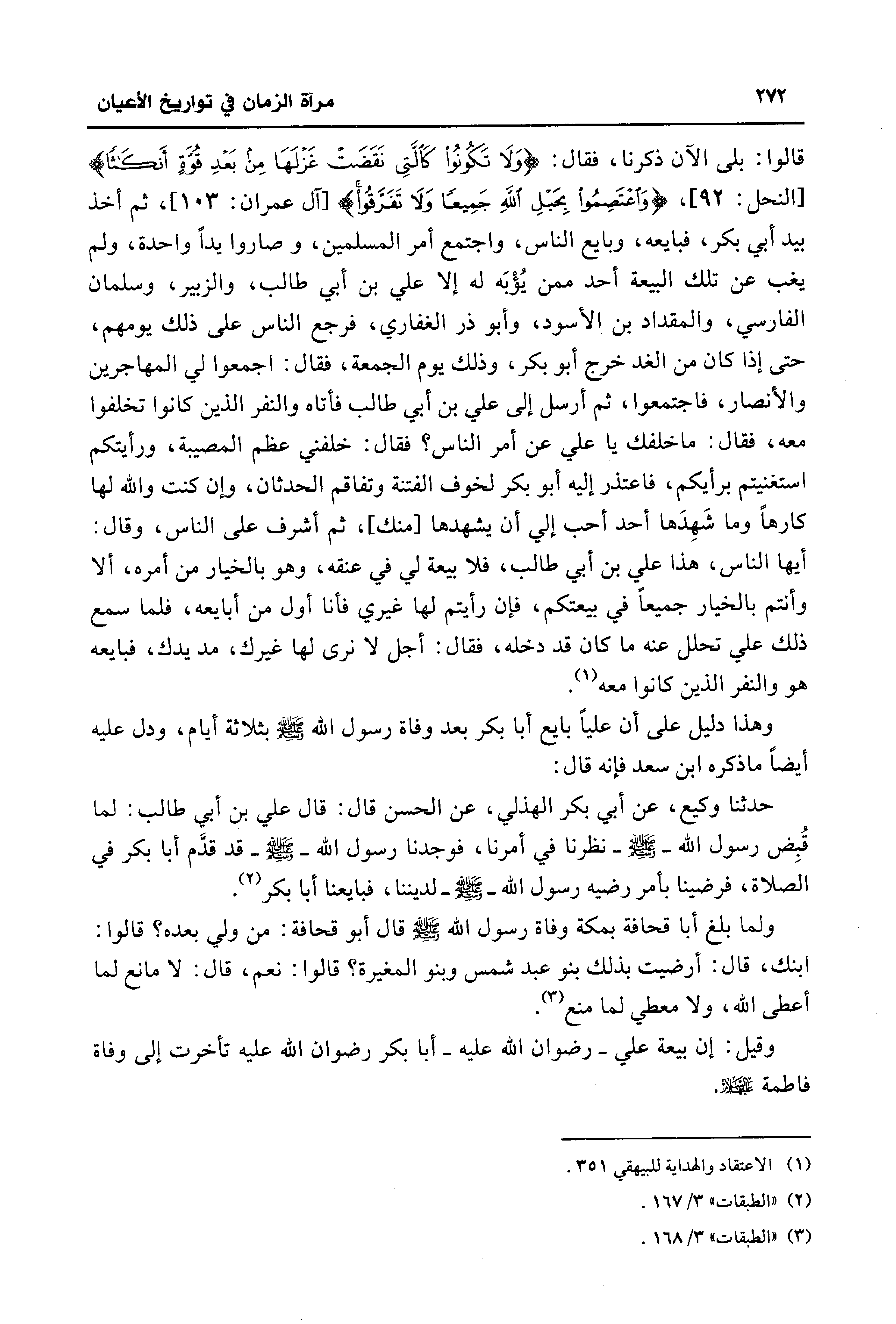 وهذا دليل على أن عليًا بايع أبا بكر بعد وفاة رسول الله - صلى الله عليه وسلم - بثلاثة أيام، ودل عليه أيضًا ما ذكره ابن سعد فإنه قال: