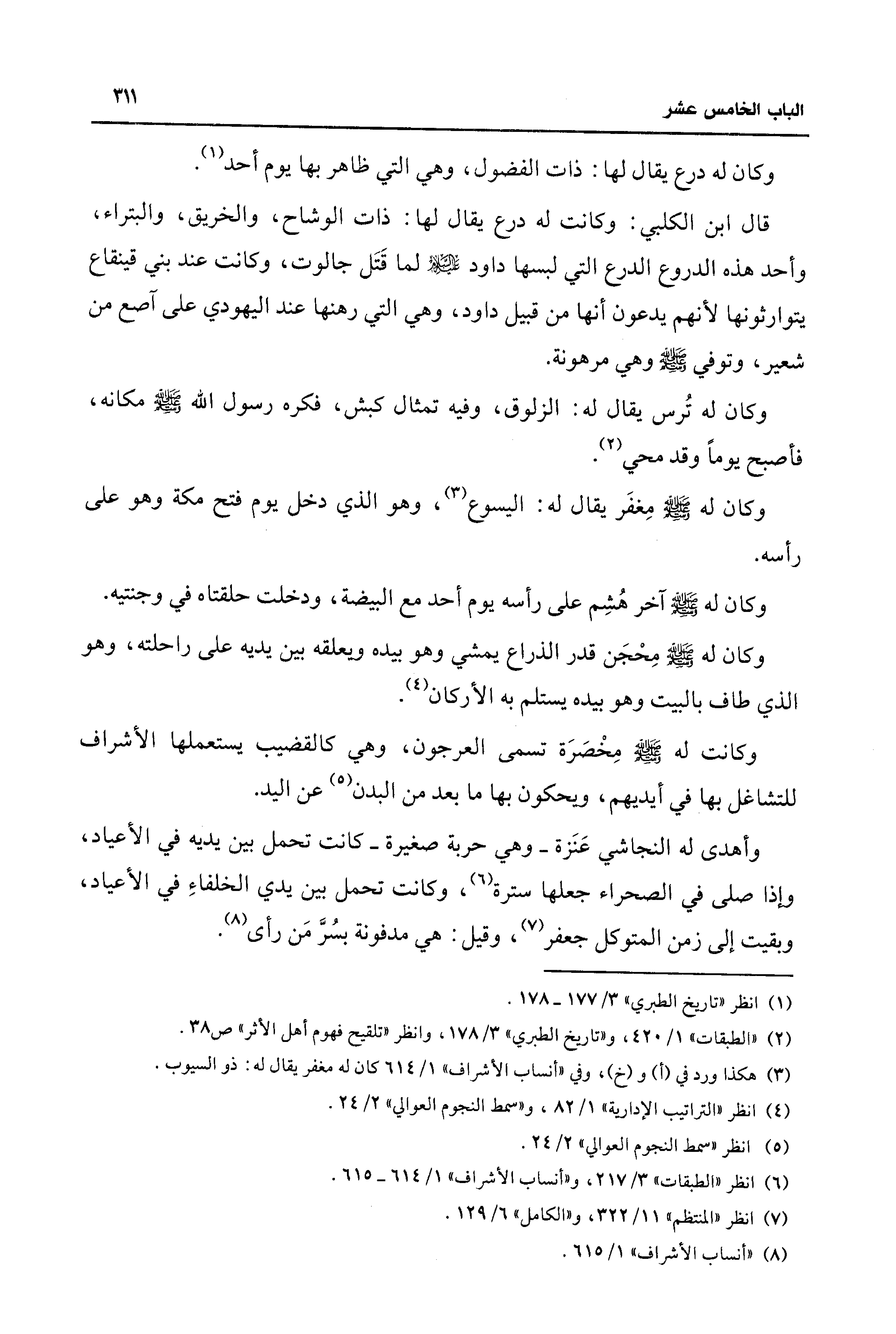 وكان له درع يقال لها: ذات الفضول، وهي التي ظاهر بها يوم أحد (¬1).