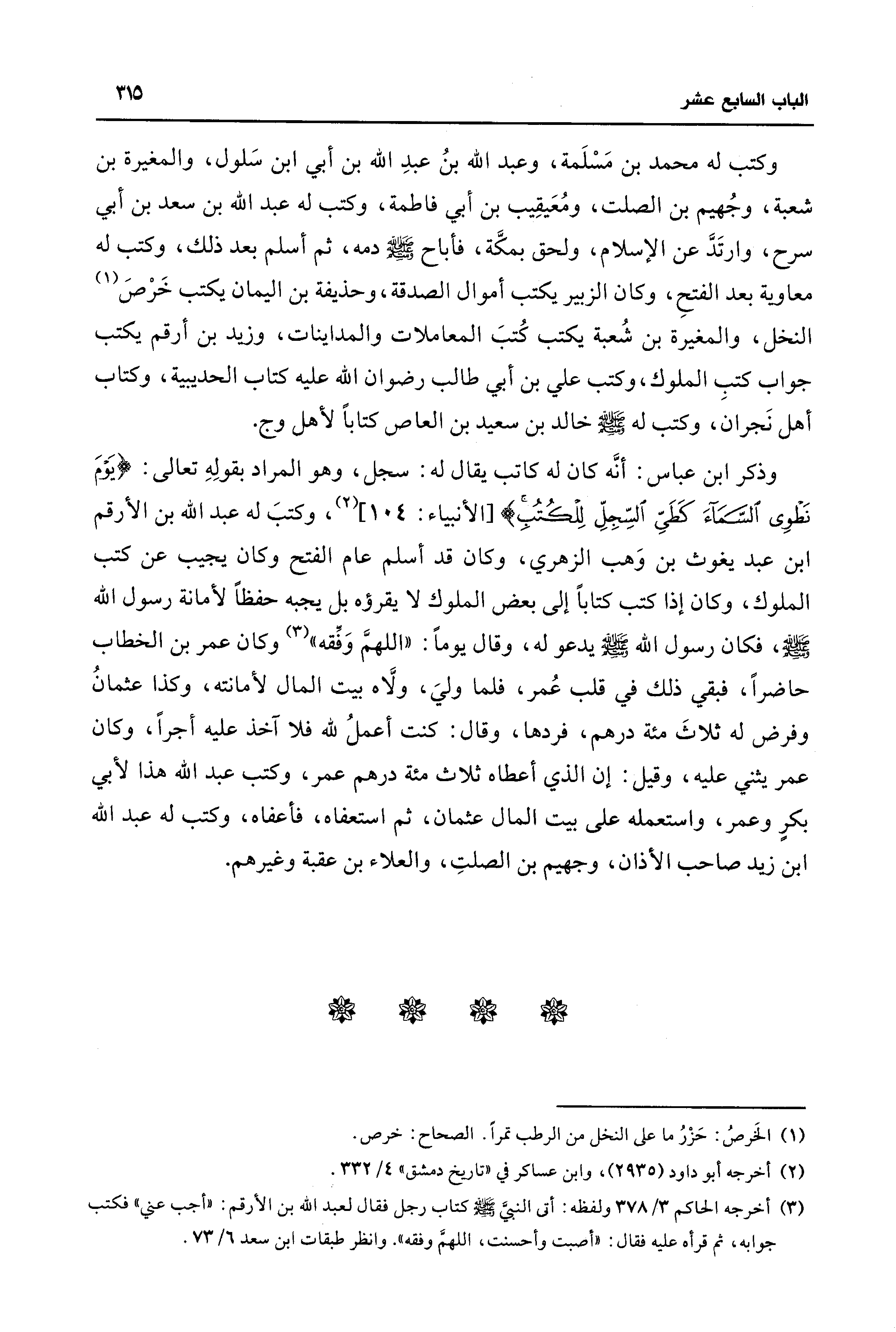 وكتب له محمد بن مَسْلَمة، وعبد الله بنُ عبدِ الله بن أبي ابن سَلول، والمغيرة بن شعبة، وجُهيم بن الصلت، ومُعَيقِيب بن أبي فاطمة، وكتب له عبد الله بن سعد بن أبي سرح، وارتَدَّ عن الإسلام، ولحق بمكَّة، فأباح - صلى الله عليه وسلم - دمه، ثم أسلم بعد ذلك، وكتب له معاوية بعد الفتحِ، وكان الزبير يكتب أموال الصدقة، وحذيفة بن اليمان يكتب خَرْصَ (¬1) النخل، والمغيرة بن شُعبة يكتب كُتبَ المعاملات والمداينات، وزيد بن أرقم يكتب جواب كتبِ الملوك، وكتب علي بن أبي طالب رضوان الله عليه كتاب الحديبية، وكتاب أهل نَجران، وكتب له - صلى الله عليه وسلم - خالد بن سعيد بن العاص كتابًا لأهل وج.