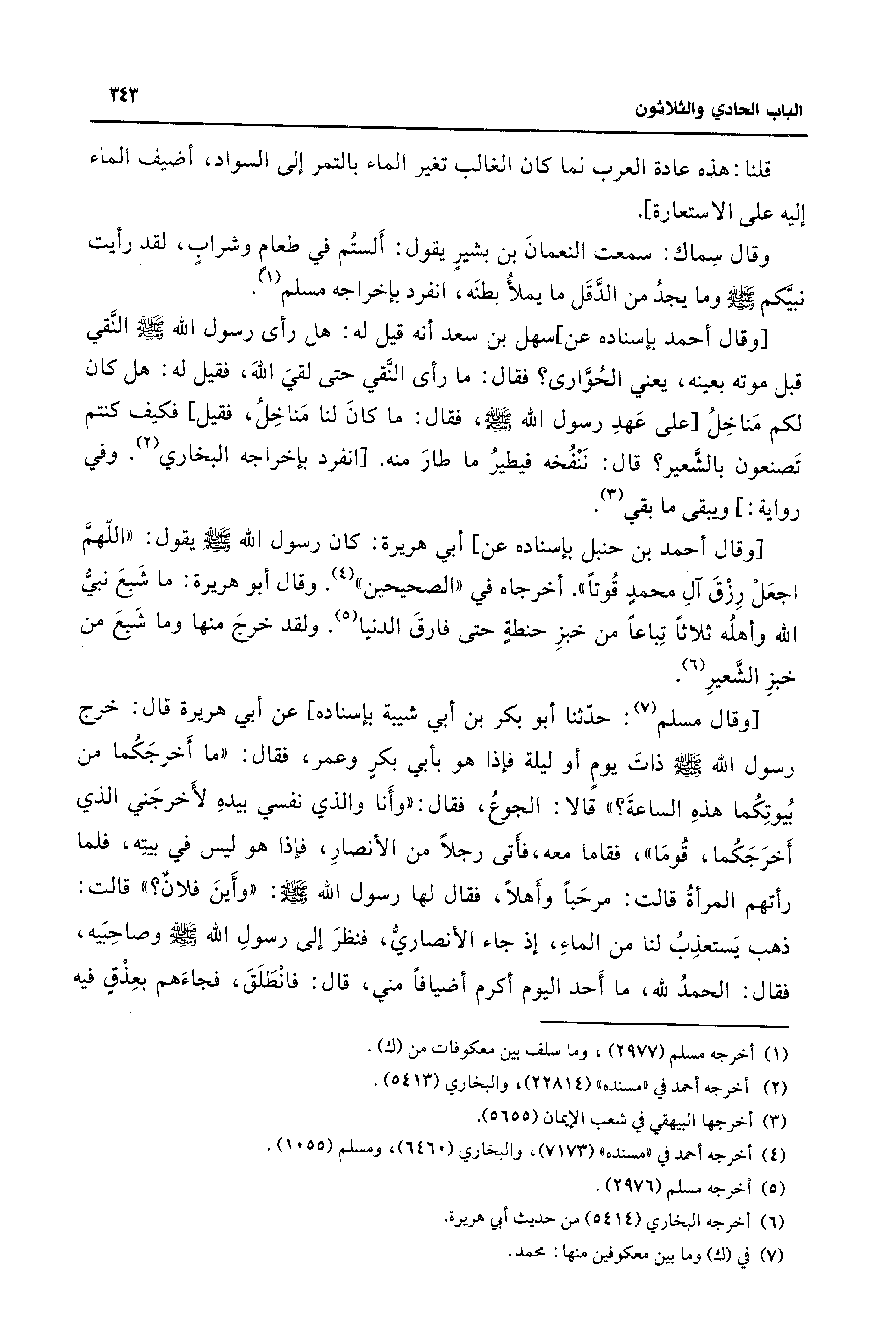 [وقال أحمد بإسناده عن] سهل بن سعد أنه قيل له: هل رأى رسول الله - صلى الله عليه وسلم - النَّقي قبل موته بعينه، يعني الحُوَّارى؟ فقال: ما رأى النَّقي حتى لقيَ اللهَ، فقيل له: هل كان لكم مَناخِلُ [على عَهدِ رسول الله - صلى الله عليه وسلم -، فقال: ما كانَ لنا مَناخِلُ، فقيل] فكيف كنتم تَصنعون بالشَّعير؟ قال: نَنْفُخه فيطيرُ ما طارَ منه. [انفرد بإخراجه البخاري (¬2). وفي رواية: ] ويبقى ما بقي (¬3).