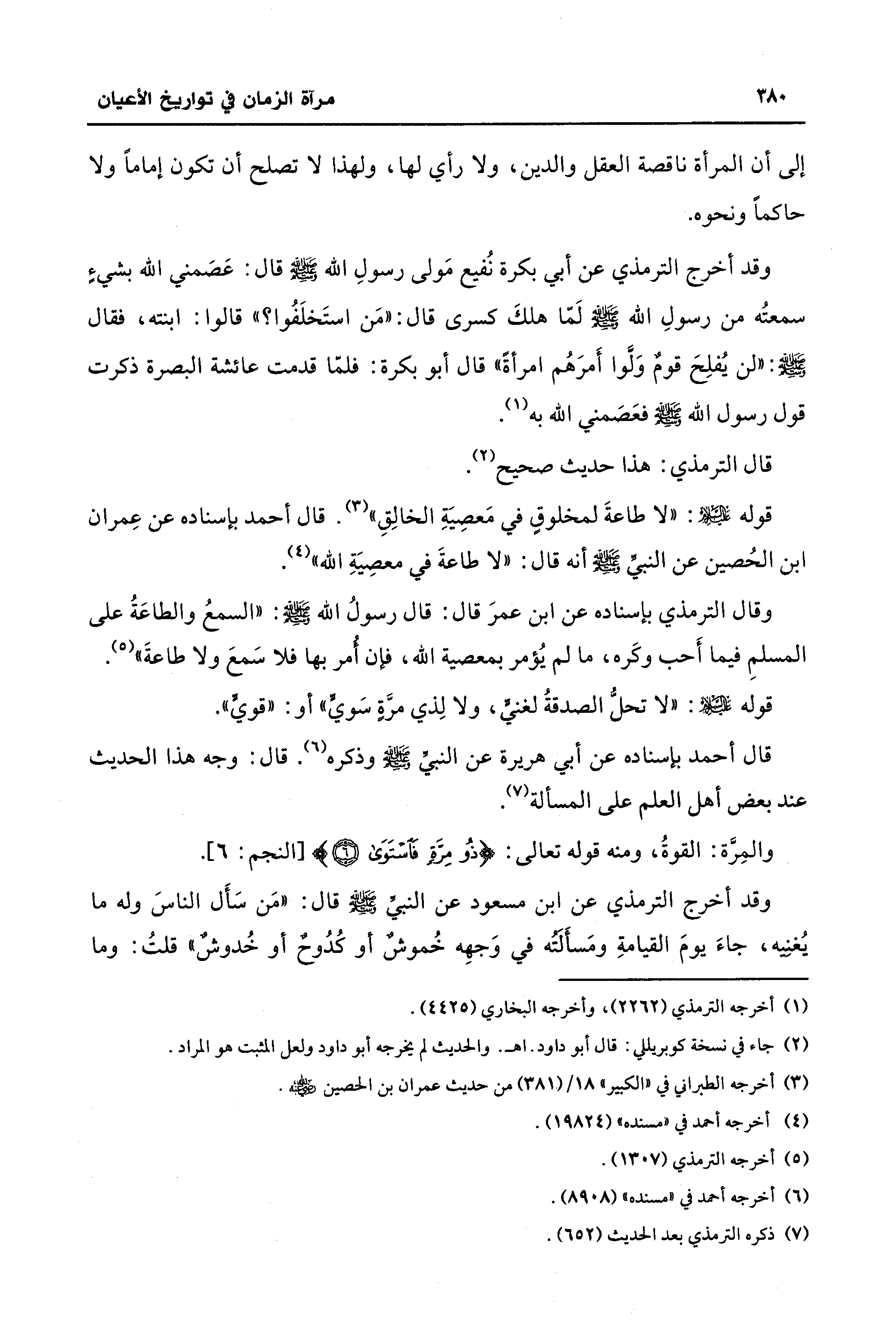 وقد أخرج الترمذي عن أبي بكرة نُفيع مَولى رسولِ الله - صلى الله عليه وسلم - قال: عَصَمني الله بشيءٍ سمعتُه من رسولِ الله - صلى الله عليه وسلم - لَمّا هلكَ كسرى قال: "مَن استَخلَفُوا؟ " قالوا: ابنته، فقال - صلى الله عليه وسلم -: "لن يُفلِحَ قومٌ وَلَّوا أَمرَهُم امرأةً" قال أبو بكرة: فلمّا قدمت عائشة البصرة ذكرت قول رسول الله - صلى الله عليه وسلم - فعَصَمني الله به (¬1).