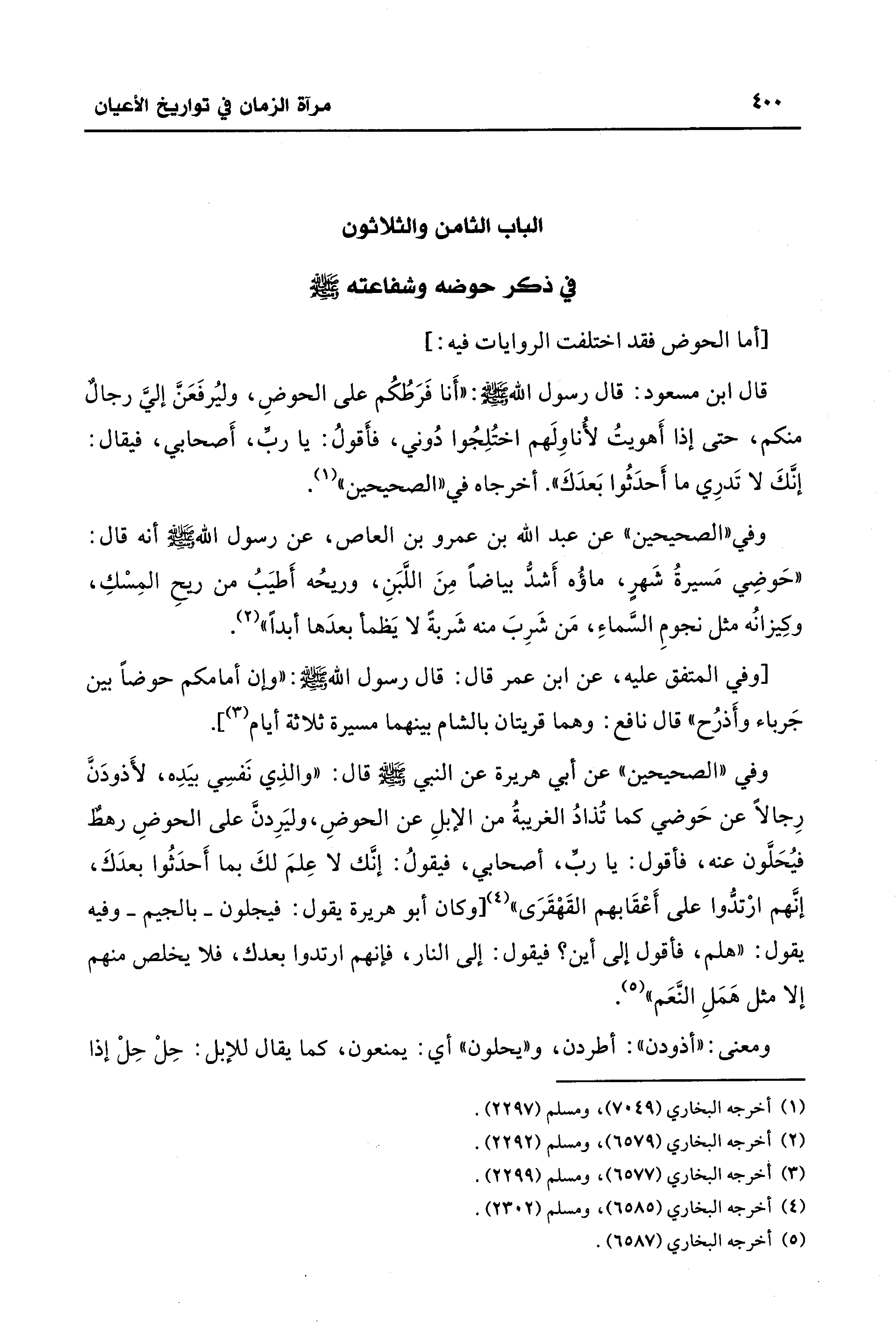 [وفي المتفق عليه، عن ابن عمر قال: قال رسول الله - صلى الله عليه وسلم -: "وإن أمامكم حوضًا بين جَرباء وأَذرُح" قال نافع: وهما قريتان بالشام بينهما مسيرة ثلاثة أيام (¬3)].