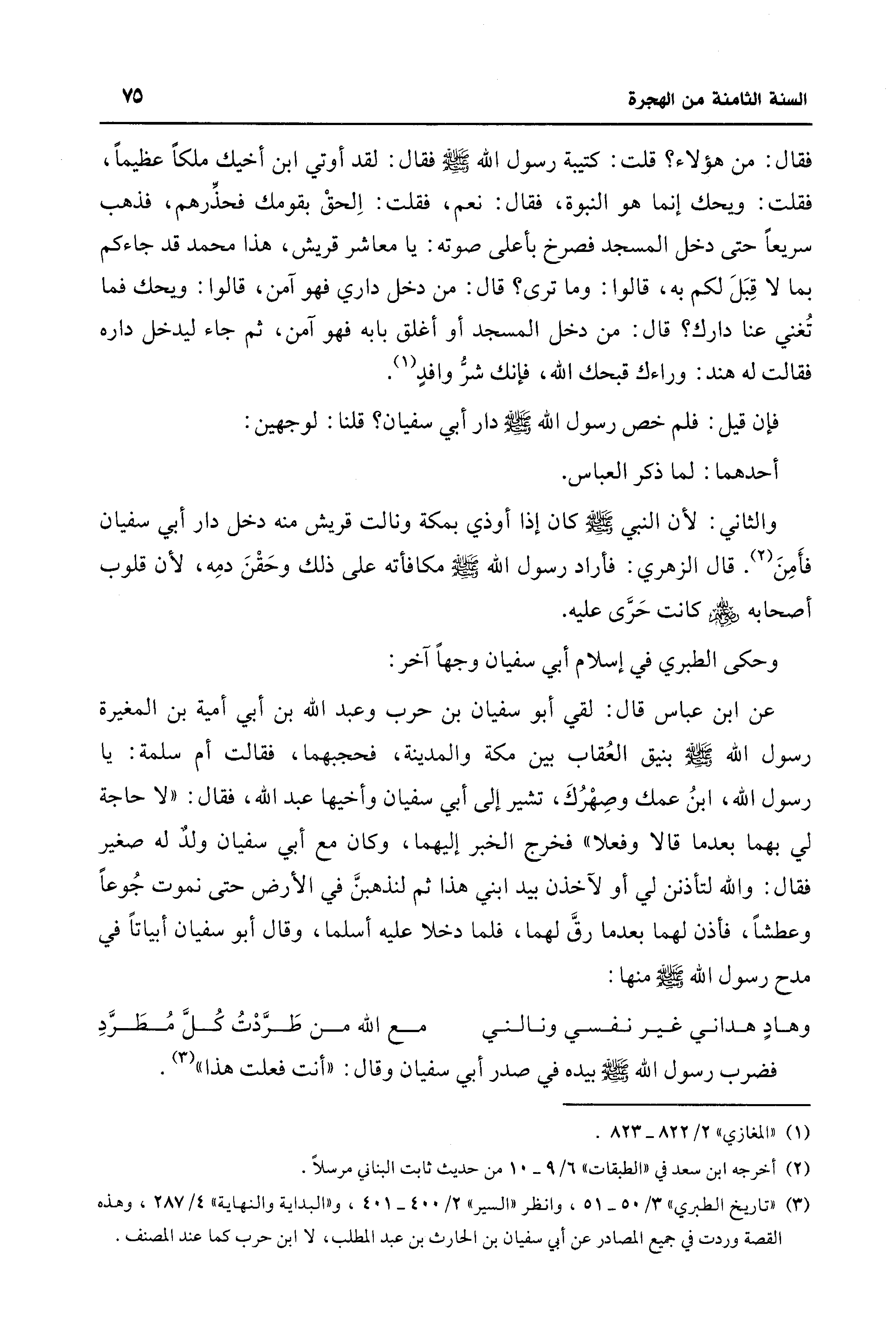 (¬3) "تاريخ الطبري" 3/ 50 - 51، وانظر "السير" 2/ 400 - 401، و"البداية والنهاية" 4/ 287، وهذه القصة وردت في جميع المصادر عن أبي سفيان بن الحارث بن عبد المطلب، لا ابن حرب كما عند المصنف.