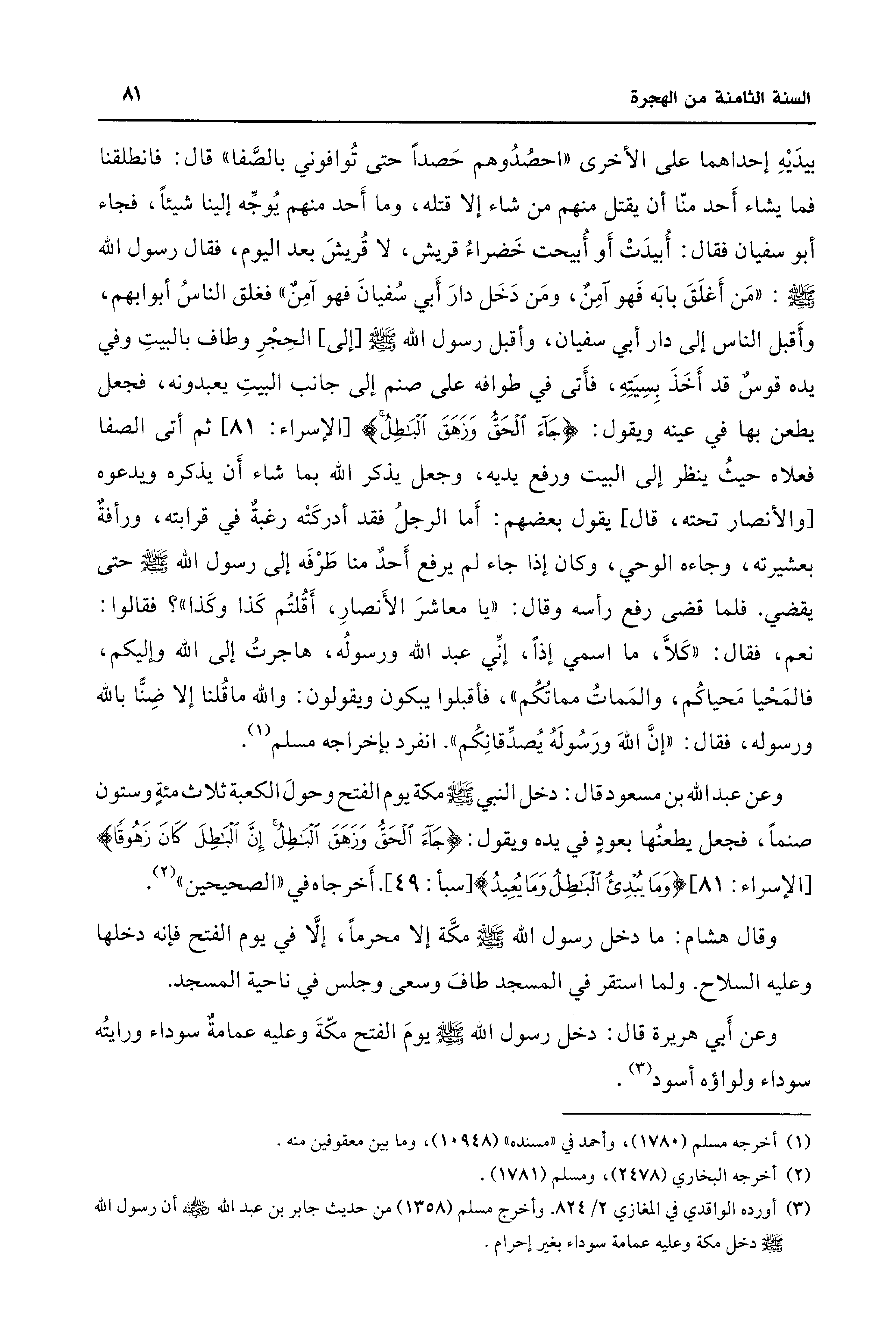 (¬3) أورده الواقدي في المغازي 2/ 824. وأخرج مسلم (1358) من حديث جابر بن عبد الله - رضي الله عنه - أن رسول الله - صلى الله عليه وسلم - دخل مكّة وعليه عمامة سوداء بغير إحرام.