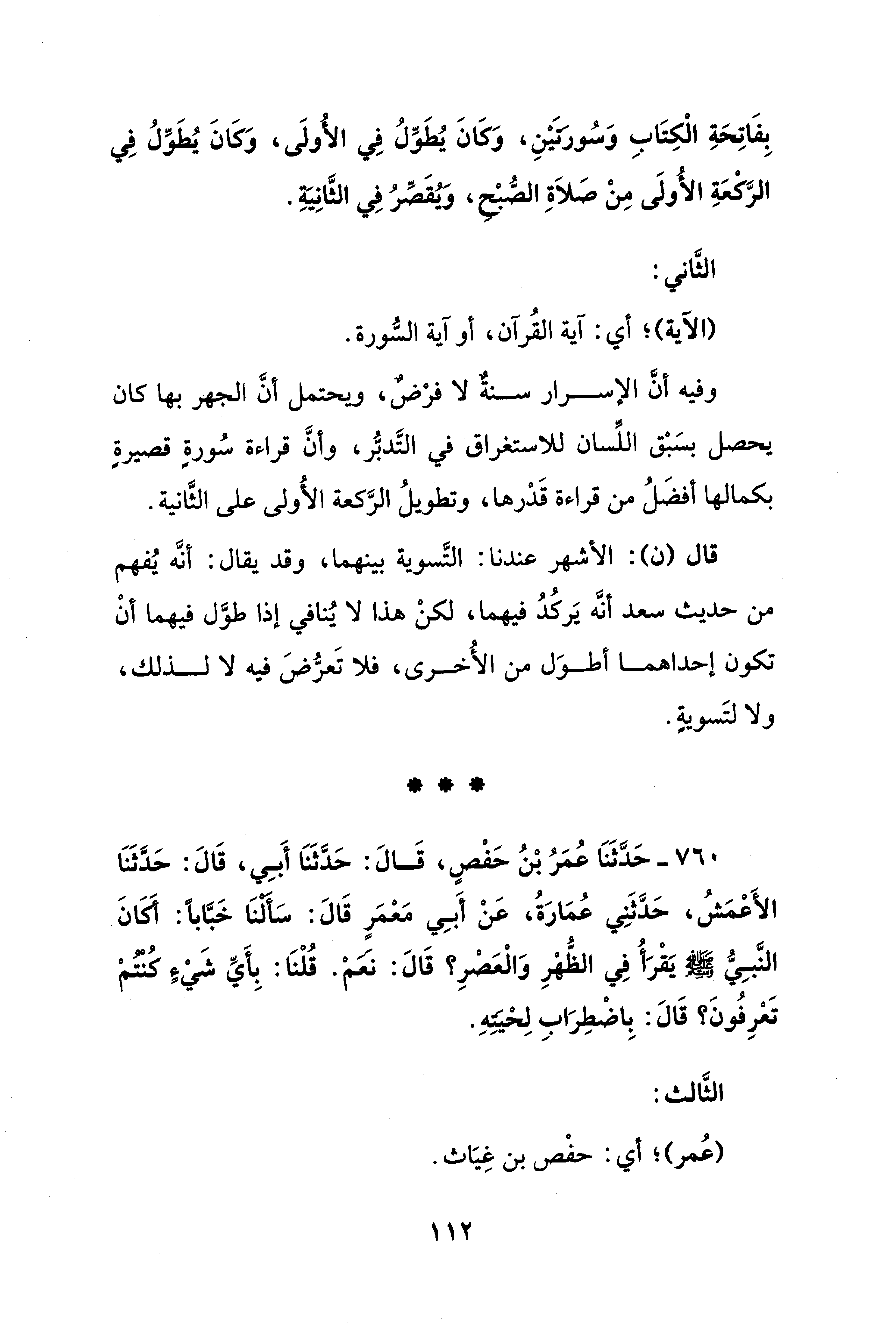 760 - حَدَّثَنَا عُمَرُ بْنُ حَفْصٍ، قَالَ: حَدَّثَنَا أَبِي، قَالَ: حَدَّثَنَا الأَعْمَشُ، حَدَّثَنِي عُمَارَةُ، عَنْ أَبِي مَعْمَرٍ قَالَ: سَأَلْنَا خَبَّابًا: أَكَانَ النَّبِيُّ - صلى الله عليه وسلم - يَقْرَأُ فِي الظُّهْرِ وَالْعَصْرِ؟ قَالَ: نعمْ. قُلْنَا: بِأَيِّ شَيْءٍ كُنْتُمْ تَعْرِفُونَ؟ قَالَ: بِاضْطِرَابِ لِحْيَتِهِ.