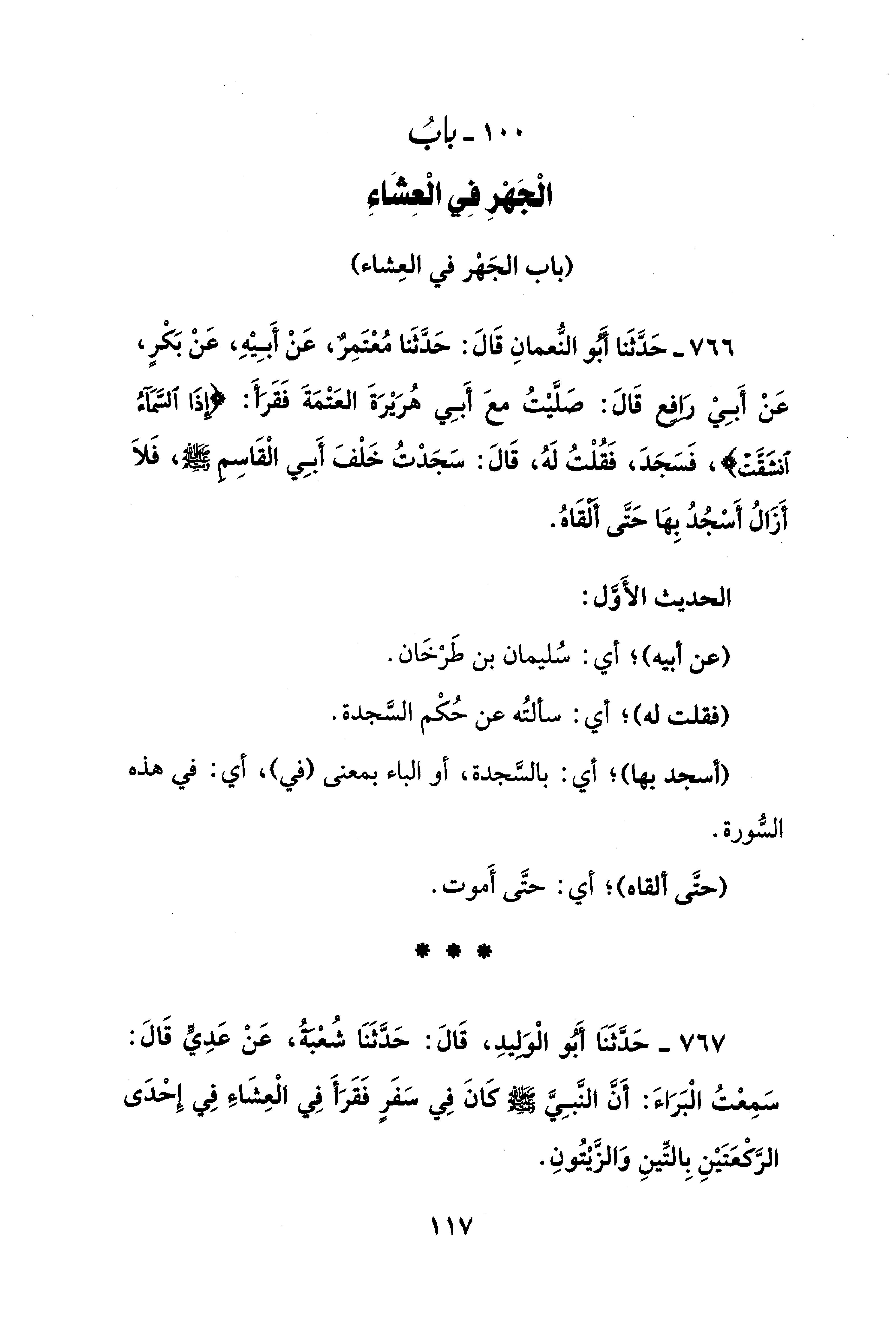 100 - بابُ الْجَهْرِ فِي الْعِشَاءِ