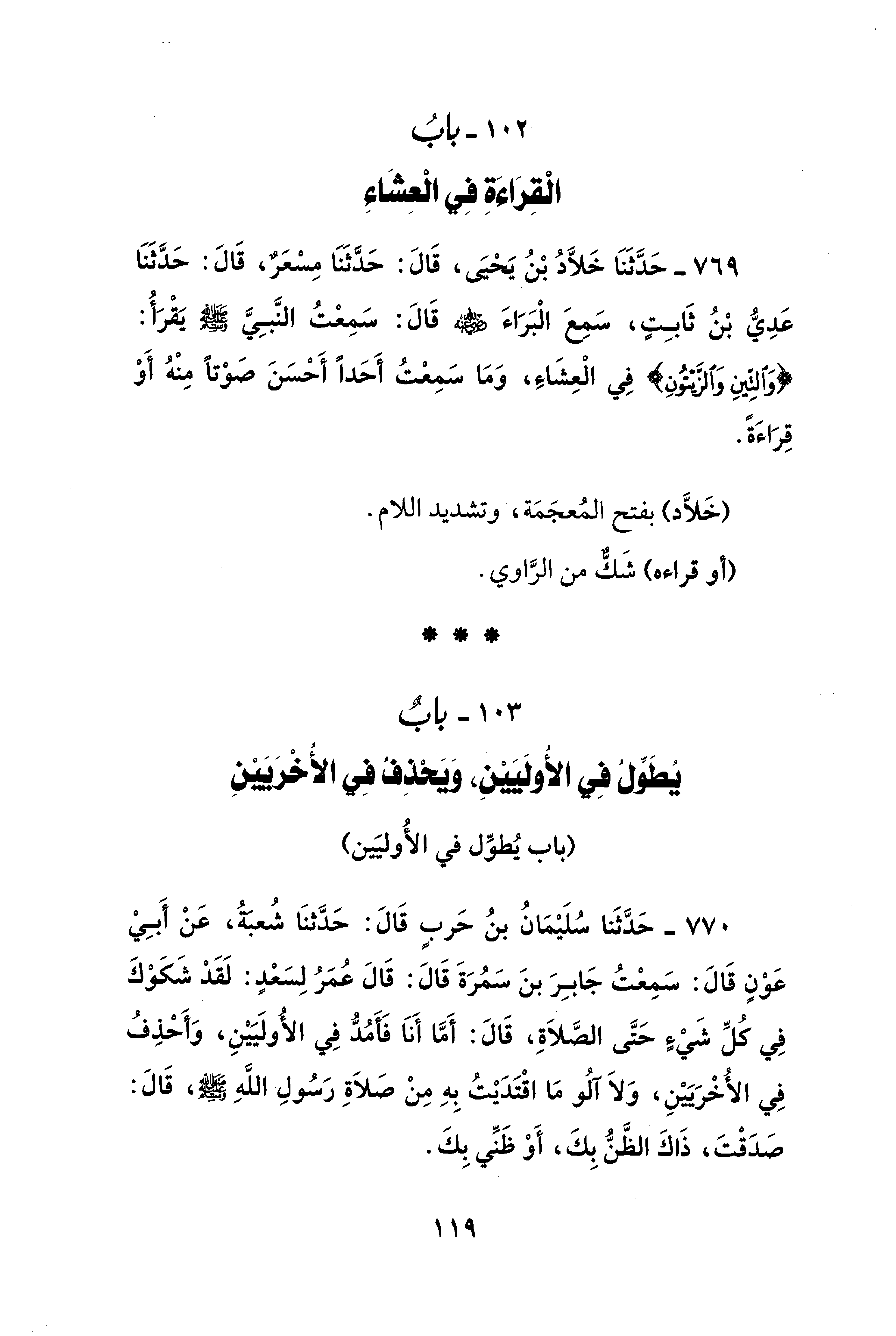 102 - بابُ الْقِرَاءَةِ فِي الْعِشَاءِ