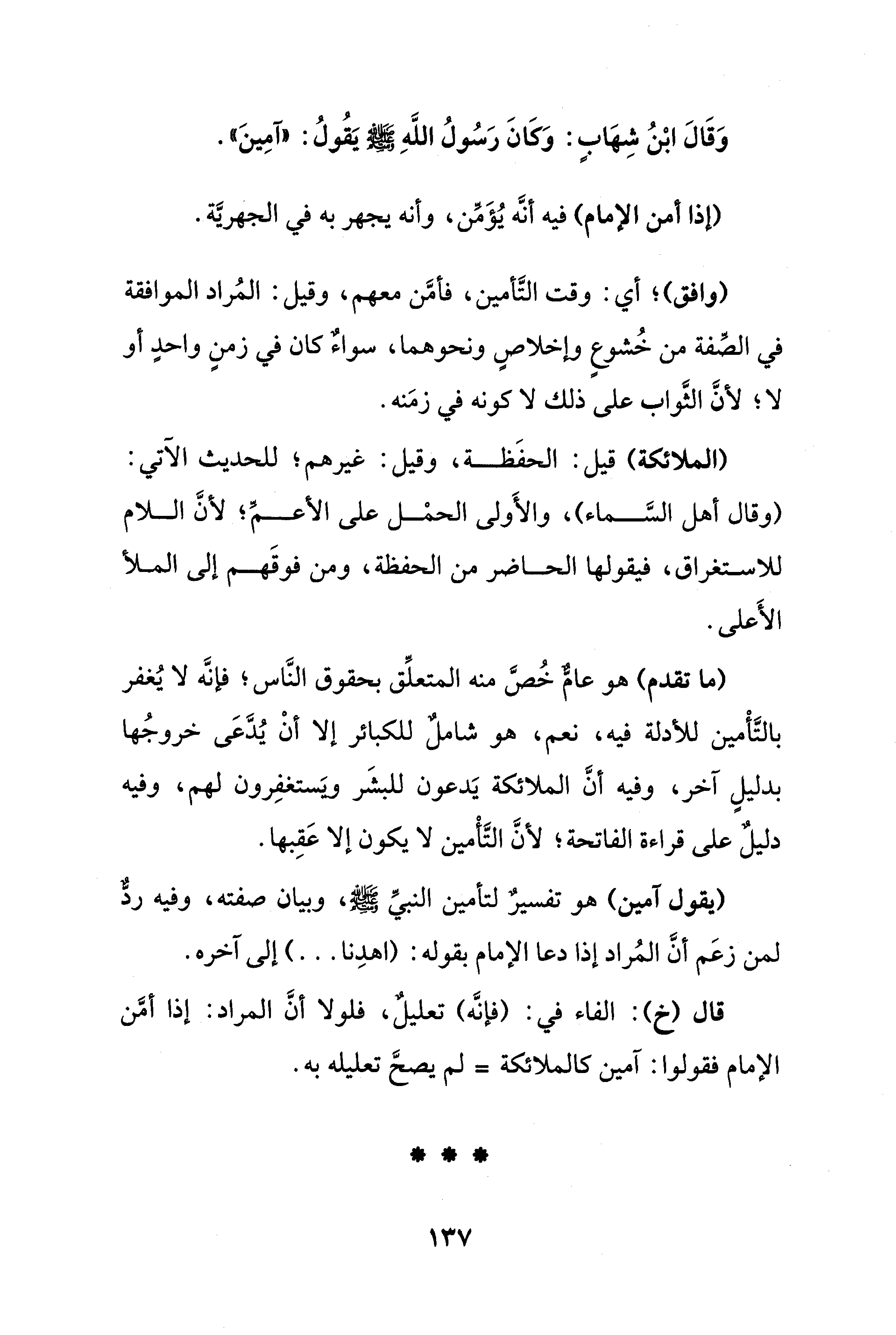 وَقَالَ ابْنُ شِهَابٍ: وَكَانَ رَسُولُ اللَّهِ - صلى الله عليه وسلم - يَقُولُ: "آمِينَ".