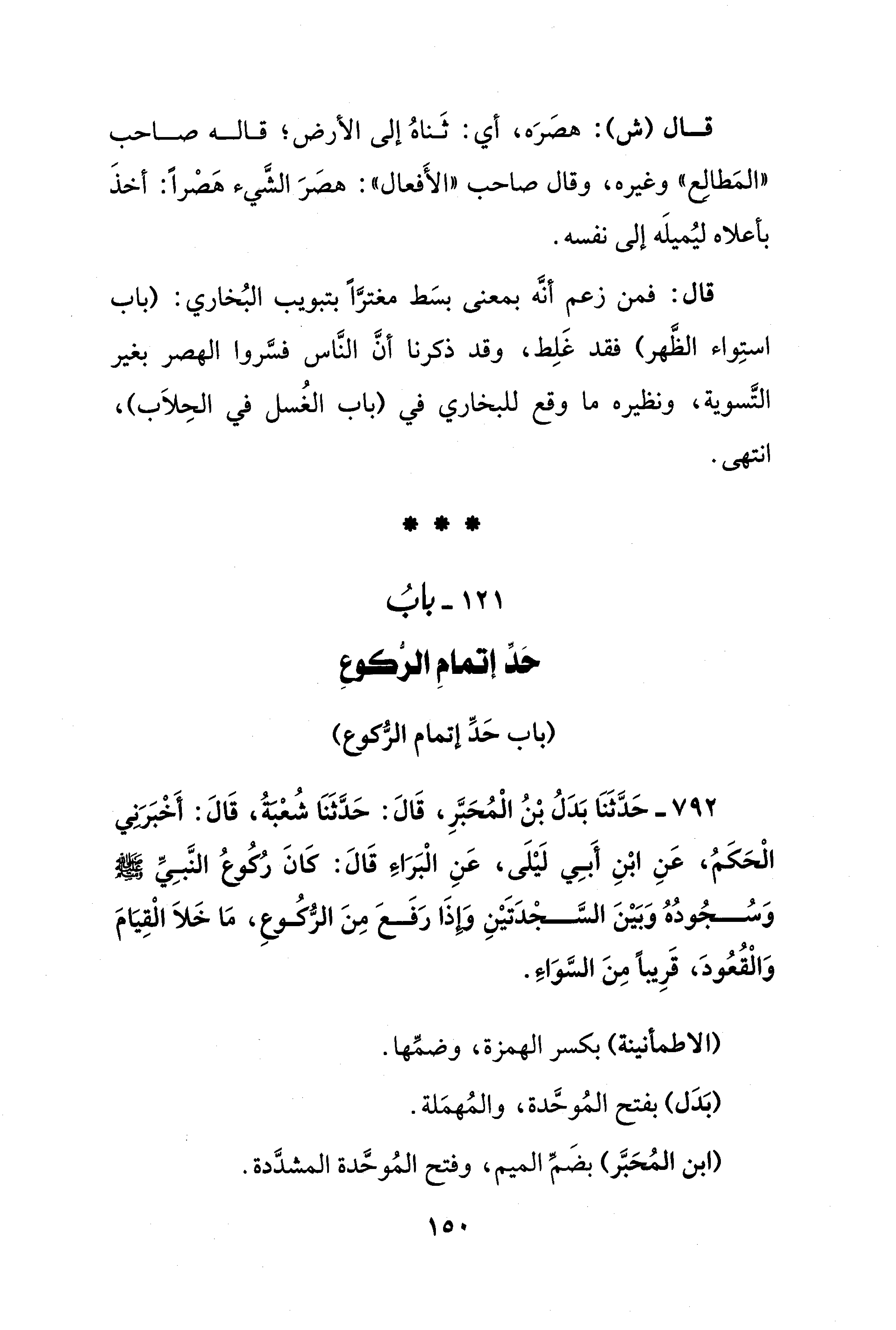 قال: فمن زعم أنَّه بمعنى بسَط مغترًّا بتبويب البُخاري: (باب استِواء الظَّهر) فقد غَلِط، وقد ذكرنا أنَّ النَّاس فسَّروا الهصر بغير التَّسوية، ونظيره ما وقع للبخاري في (باب الغُسل في الحِلاَب)، انتهى.