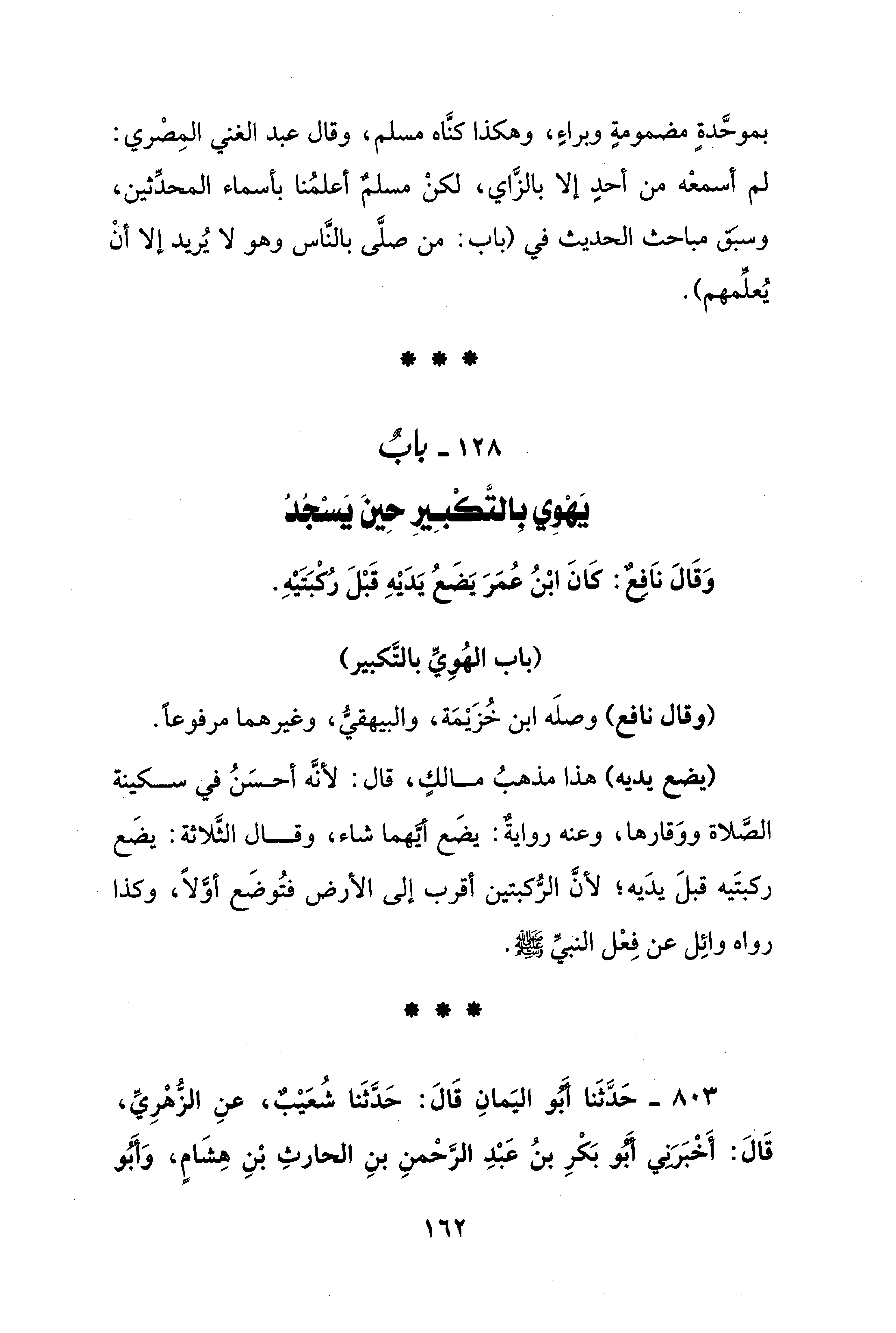 (يضع يديه) هذا مذهبُ مالكٍ، قال: لأنَّه أحسَنُ في سكينة الصَّلاة ووَقارها، وعنه روايةٌ: يضَع أيَّهما شاء، وقال الثَّلاثة: يضَع ركبتَيه قبلَ يدَيه؛ لأنَّ الرُّكبتين أقرب إلى الأرض فتُوضَع أوَّلًا، وكذا رواه وائِل عن فِعْل النبيِّ - صلى الله عليه وسلم -.