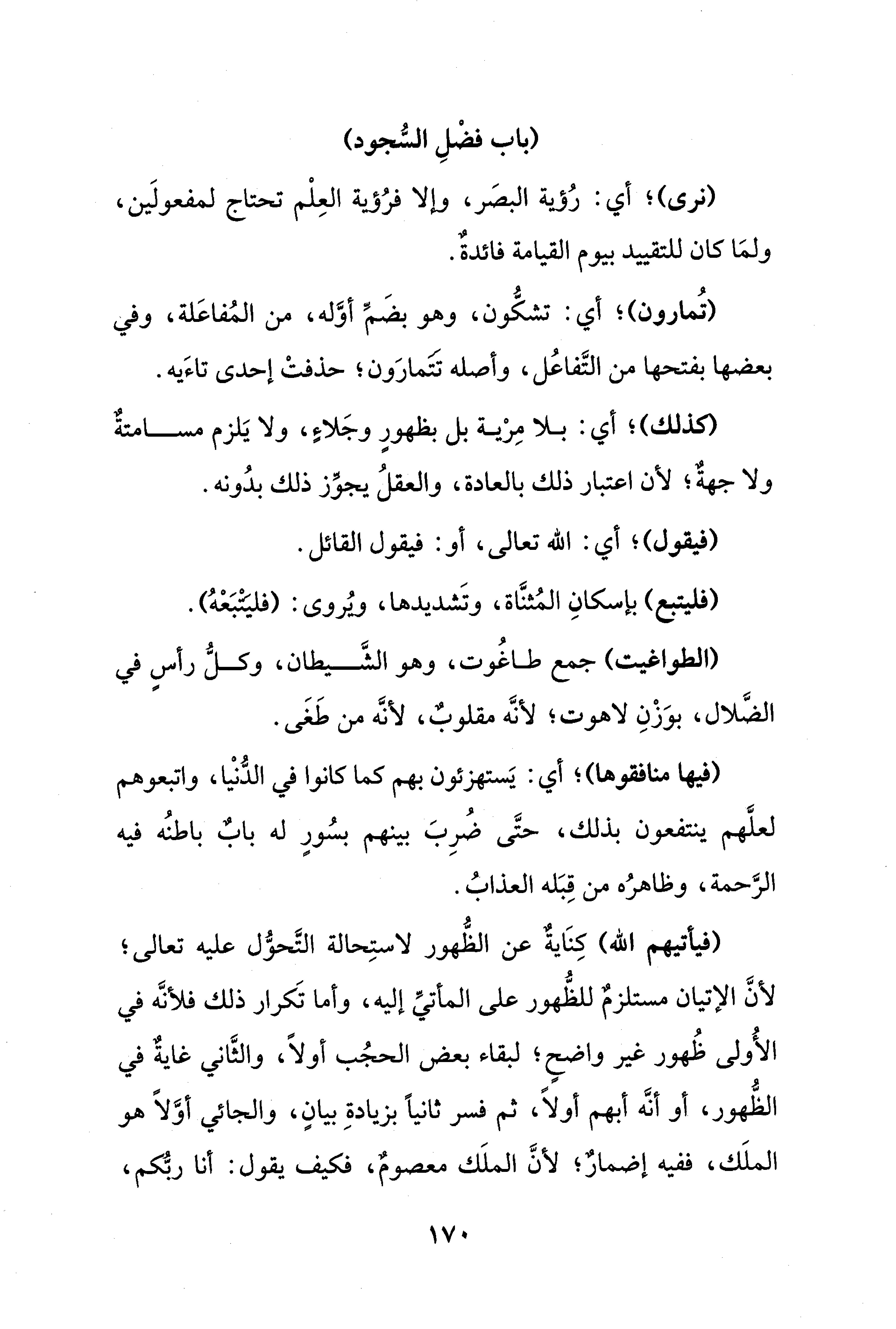 (فيأتيهم الله) كِنَايةٌ عن الظُّهور لاستِحالة التَّحوُّل عليه تعالى؛ لأنَّ الإتيان مستلزمٌ للظُّهور على المأتيِّ إليه، وأما تَكرار ذلك فلأنَّه في الأُولى ظُهور غير واضحٍ؛ لبقاء بعض الحجُب أولًا، والثَّاني غايةٌ في الظُّهور، أو أنَّه أبهم أولًا، ثم فسر ثانيًا بزيادةِ بيانٍ، والجائي أوَّلًا هو الملَك، ففيه إضمارٌ، لأنَّ الملَك معصومٌ، فكيف يقول: أنا ربُّكم،