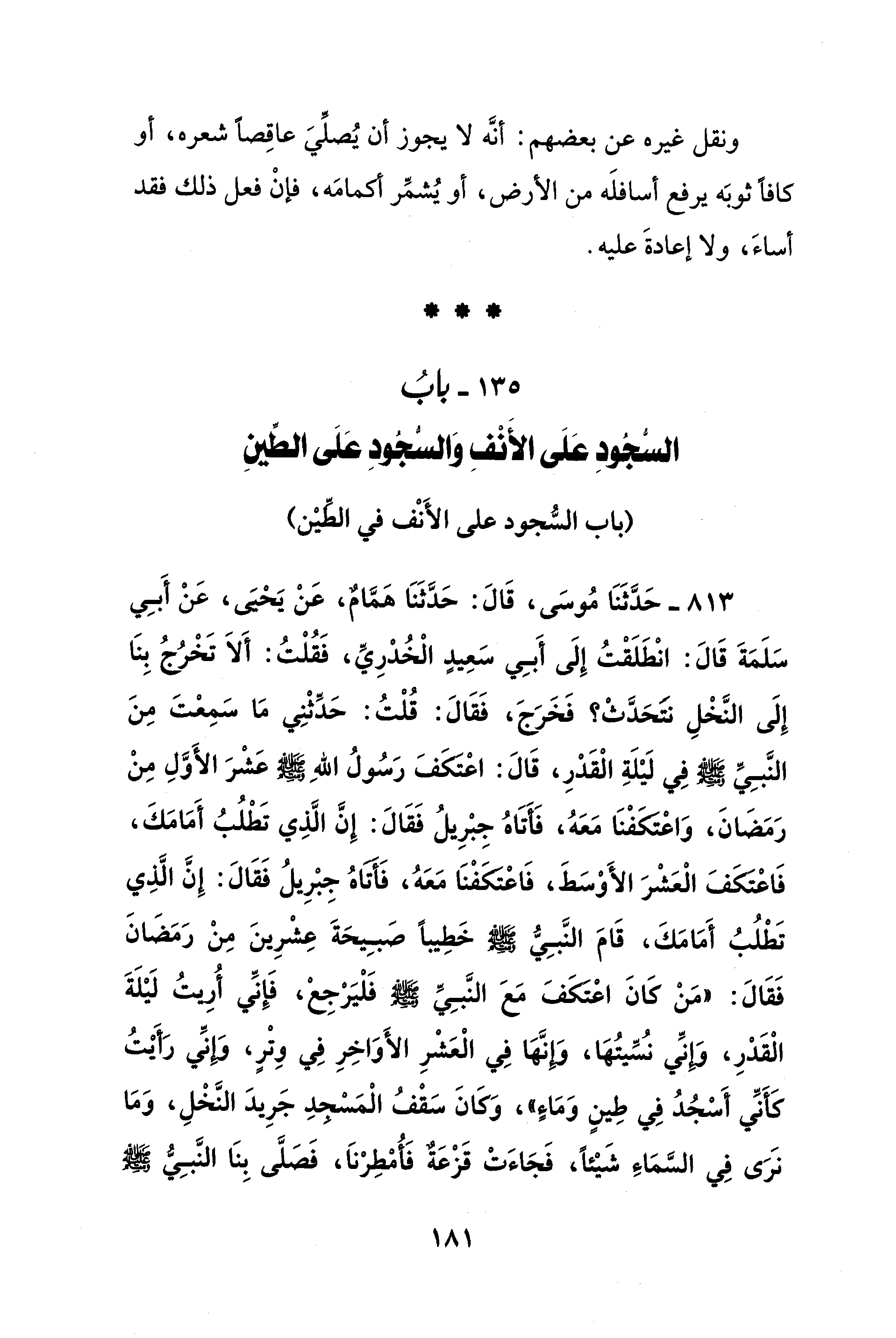 135 - بابُ السُّجُودِ عَلَى الأَنْفِ وَالسُّجُودِ عَلَى الطِّينِ