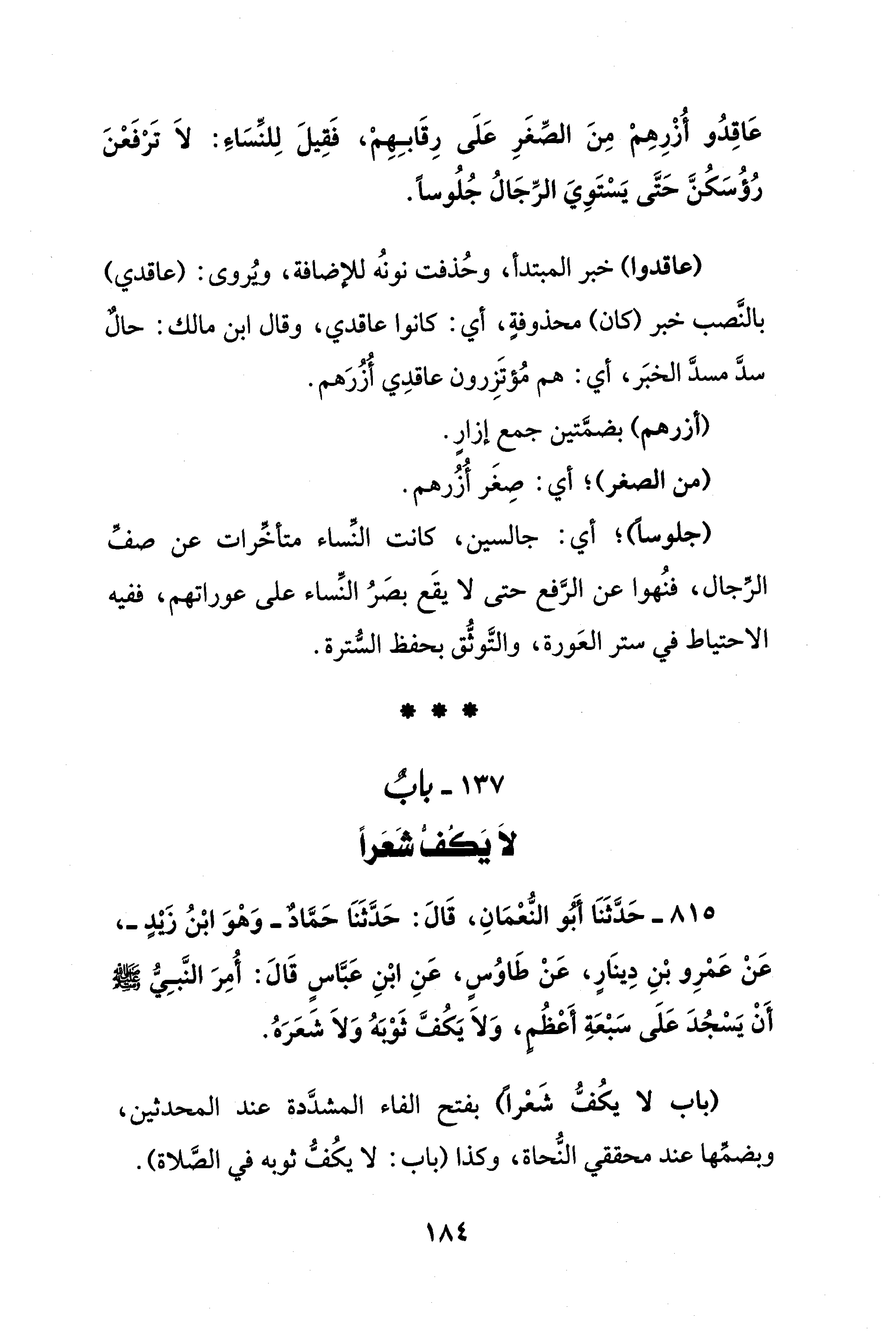 137 - بابٌ لَا يَكُفُّ شَعَرًا
