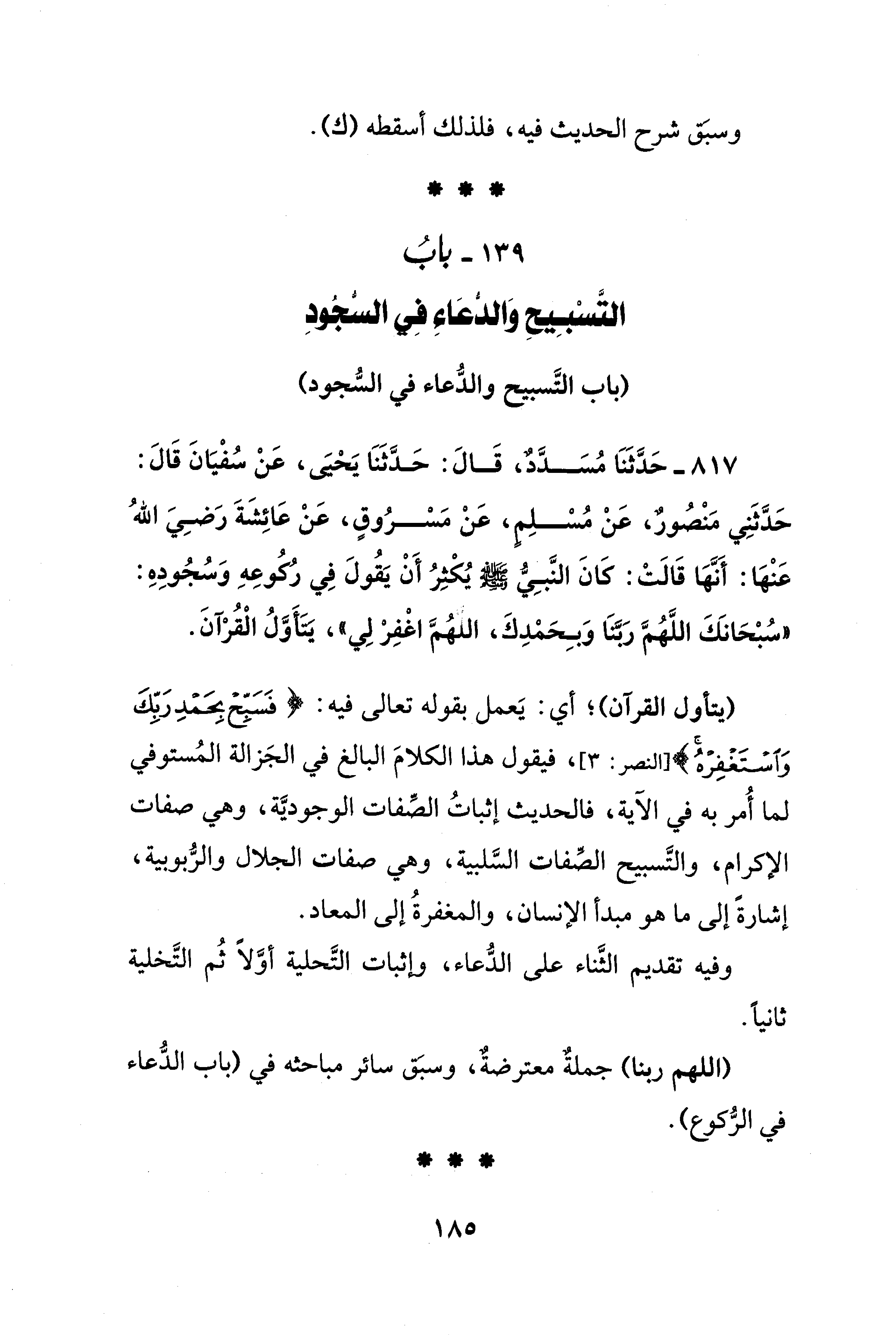 139 - بابُ التَّسْبِيح وَالدعَاء فِي السجودِ