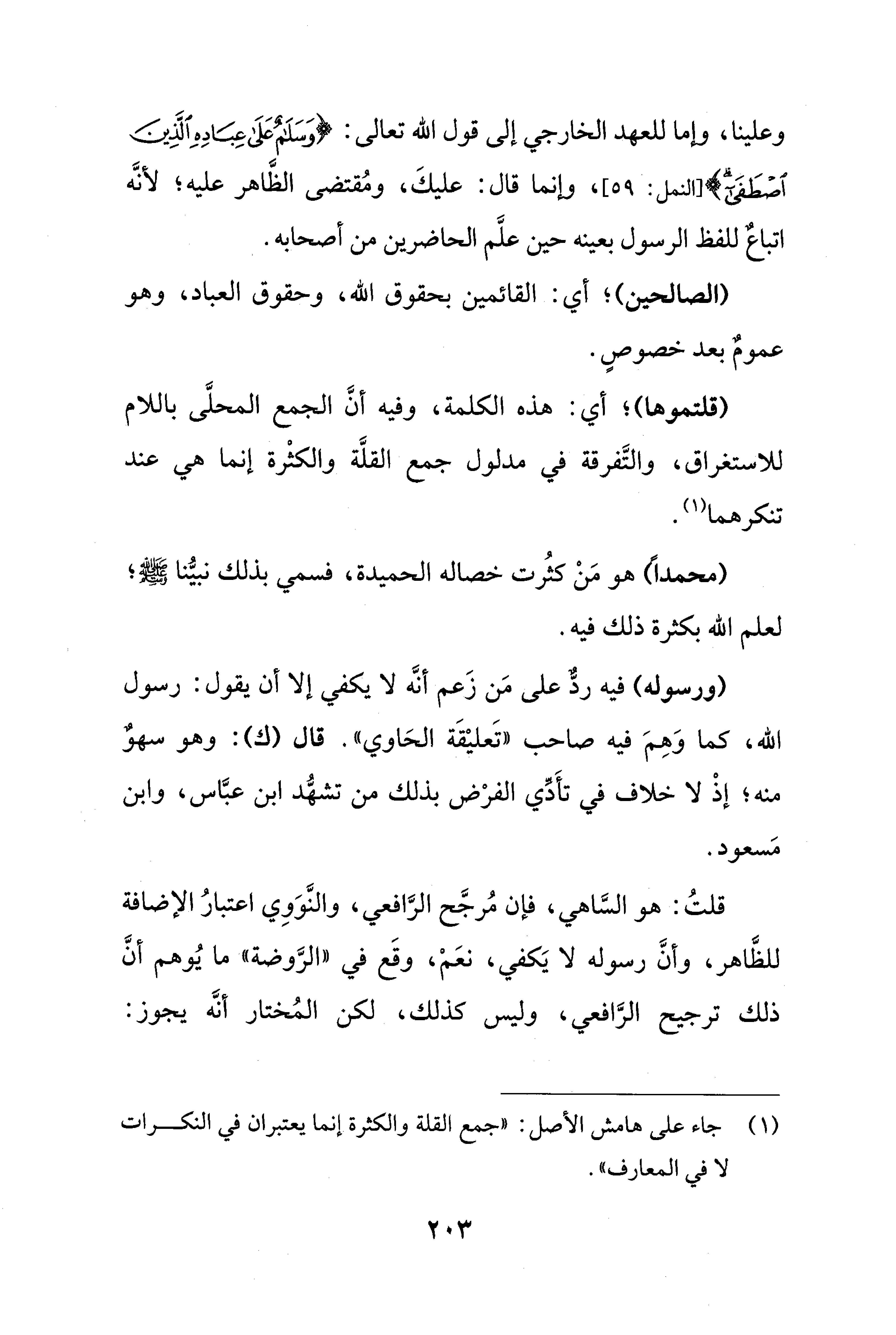 (¬1) جاء على هامش الأصل: "جمع القلة والكثرة إنما يعتبران في النكرات لا في المعارف".